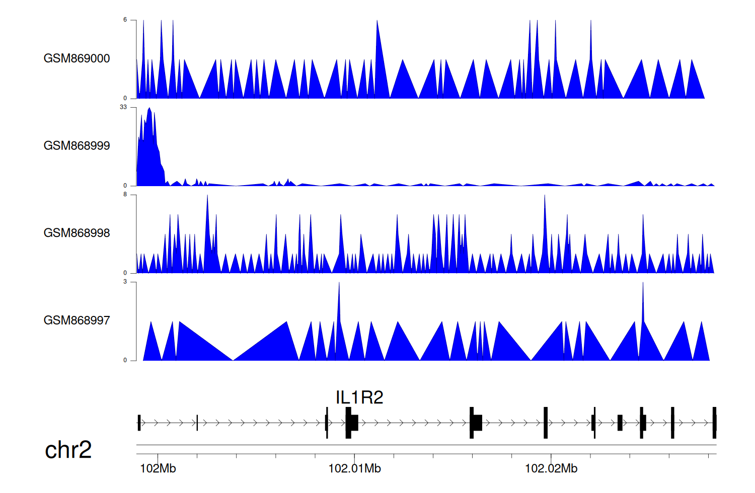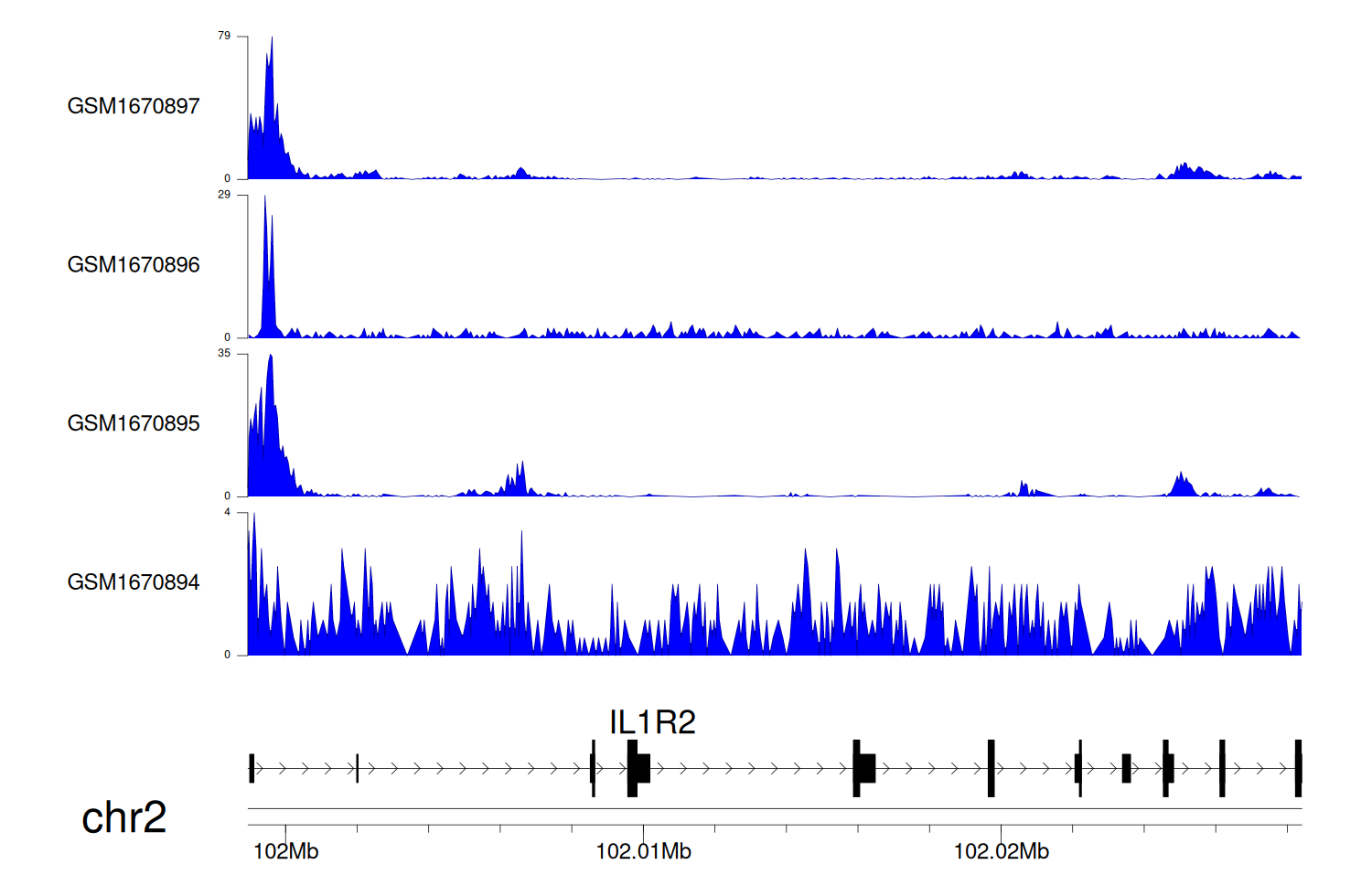 > Dataset: GSE68402 - IL1R2 peak across samples