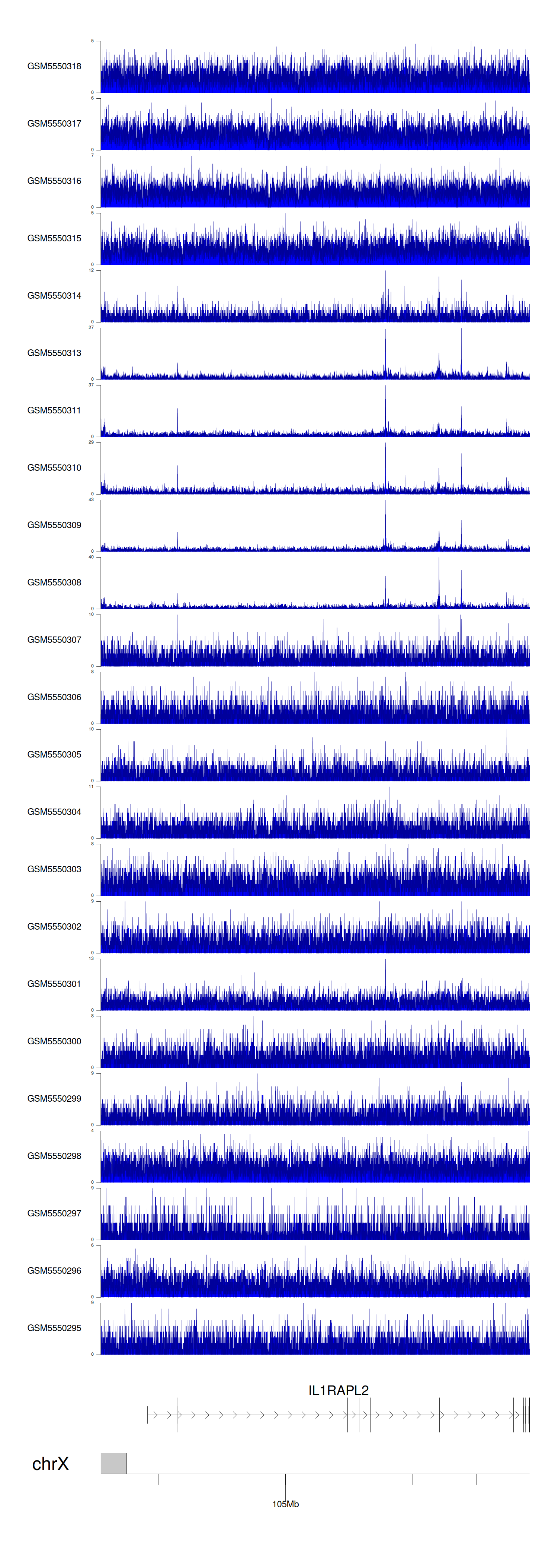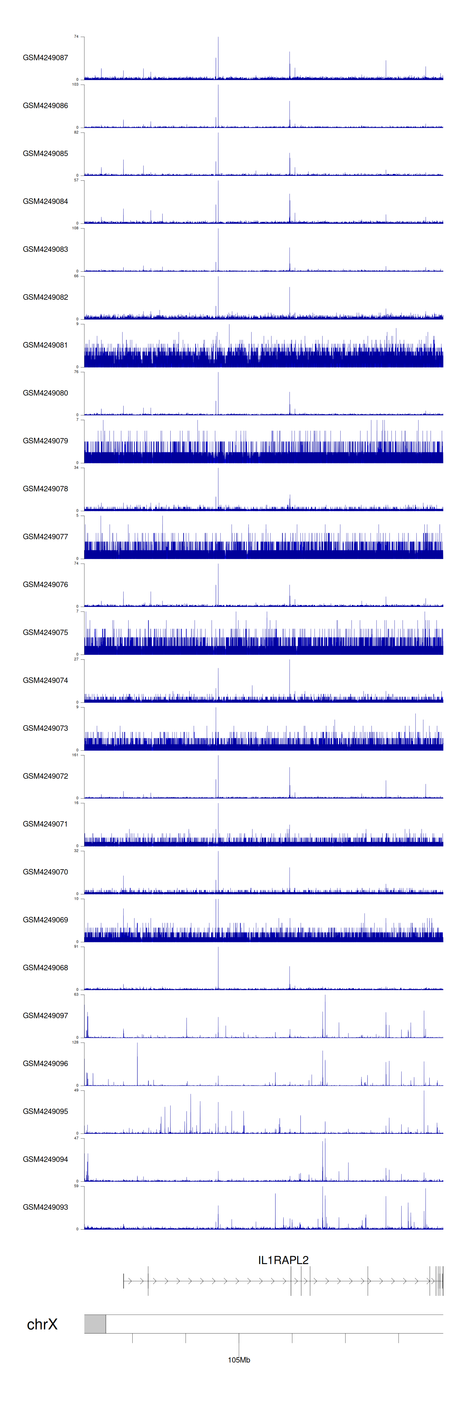 > Dataset: GSE143026 - IL1RAPL2 peak across samples