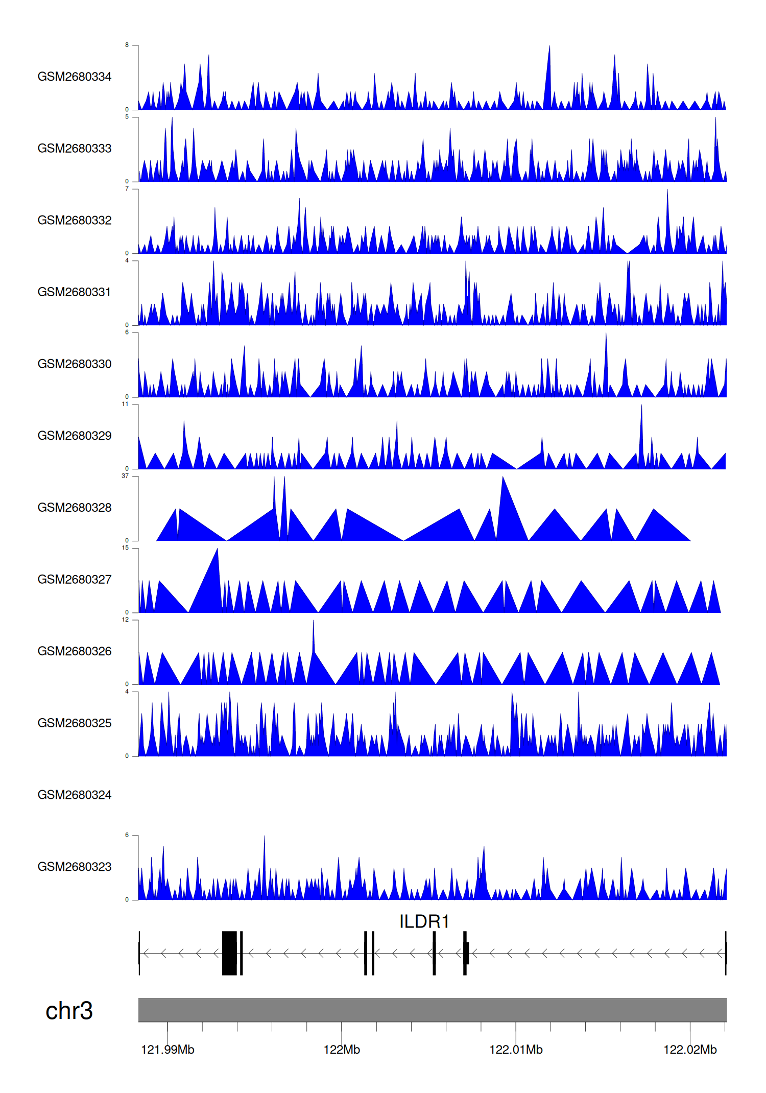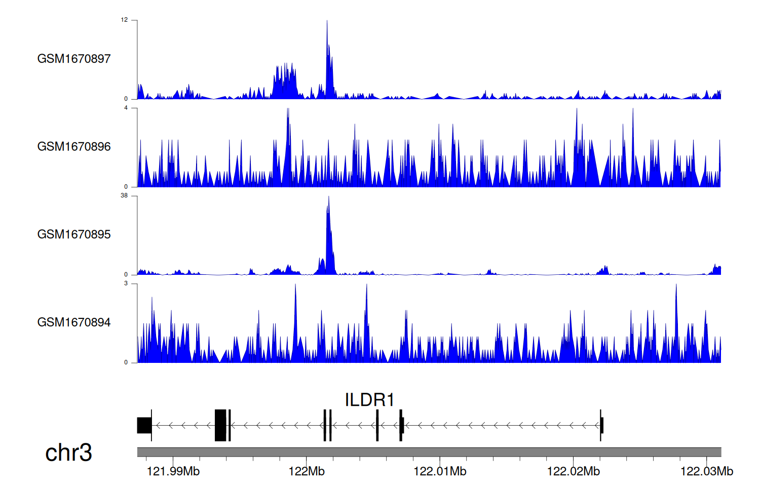 > Dataset: GSE100400 - ILDR1 peak across samples