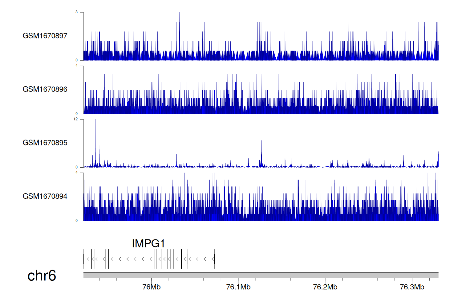 > Dataset: GSE68402 - IMPG1 peak across samples