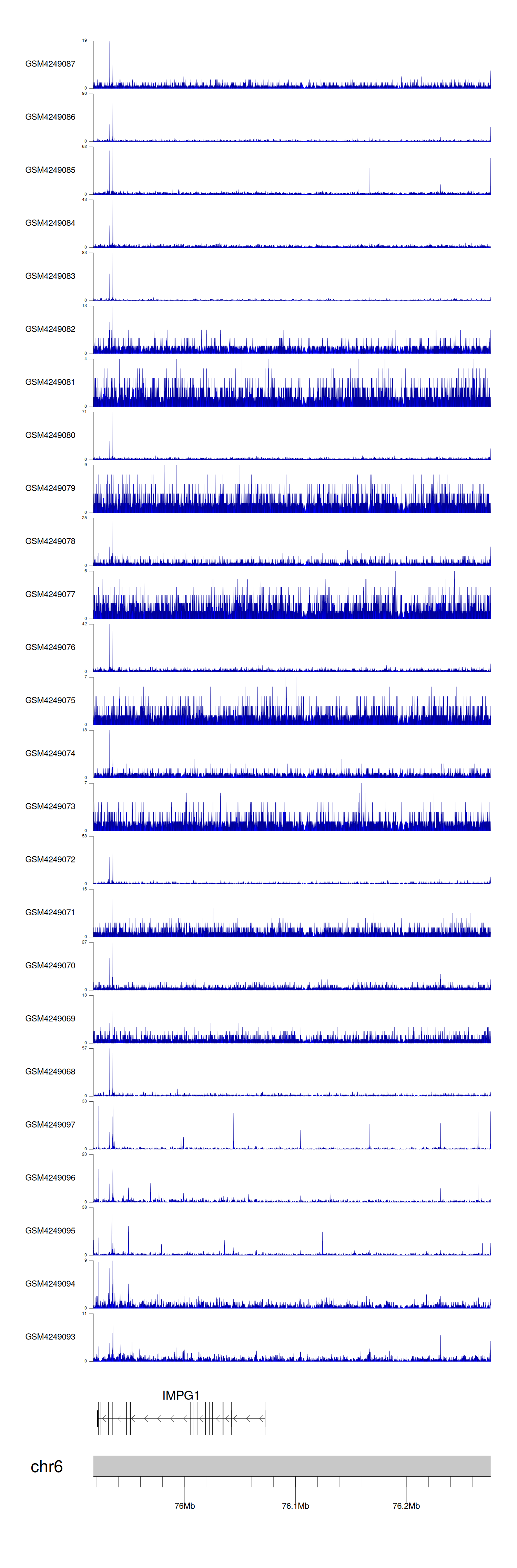 > Dataset: GSE143026 - IMPG1 peak across samples