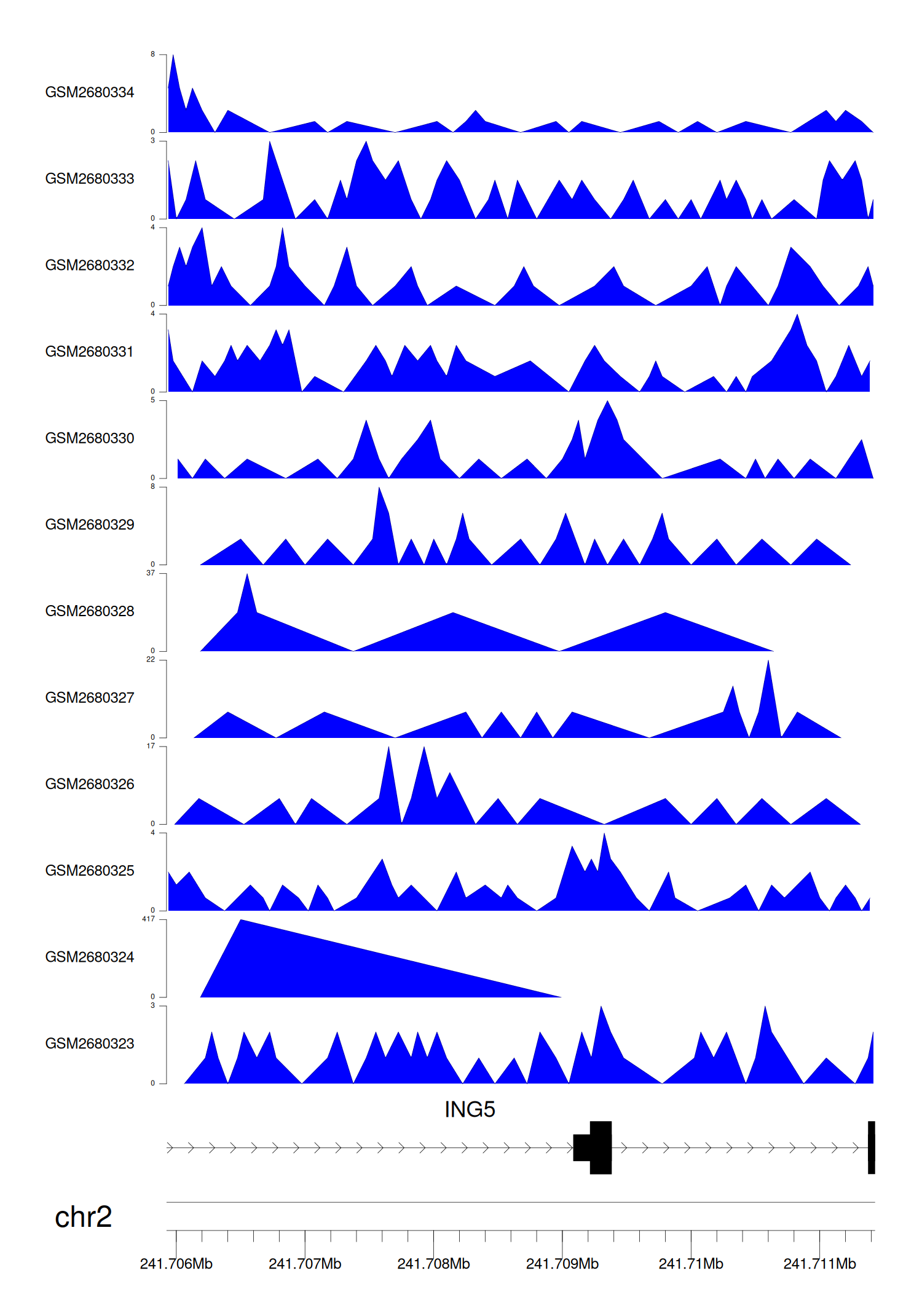 > Dataset: GSE68402 - ING5 peak across samples