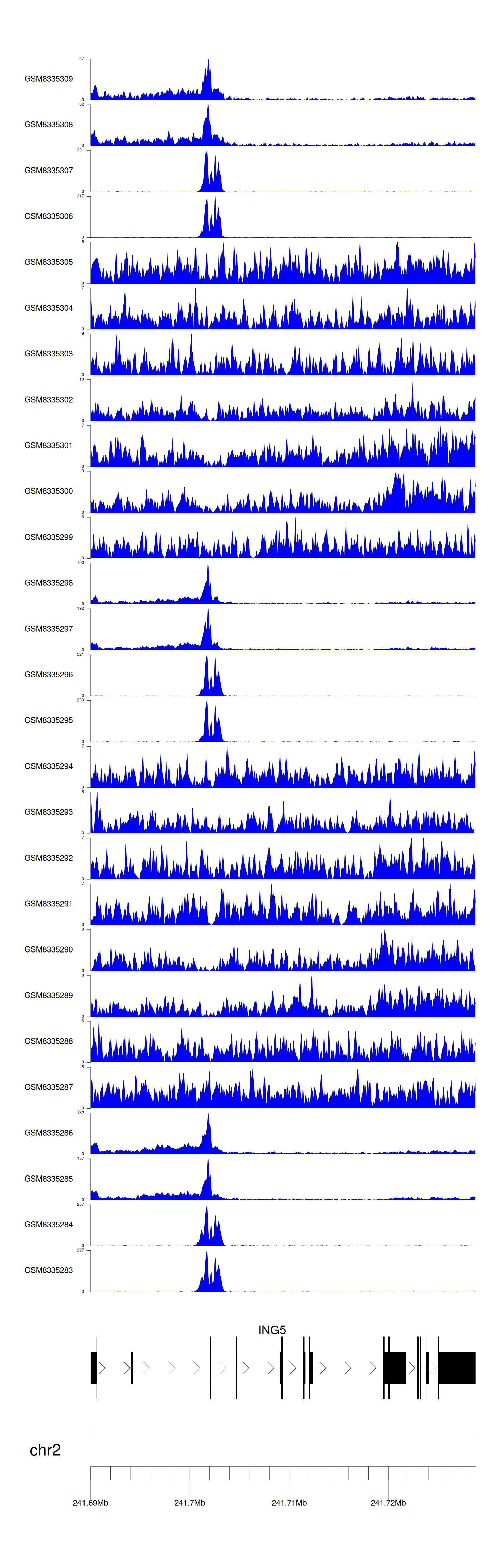 > Dataset: GSE270130 - ING5 peak across samples
