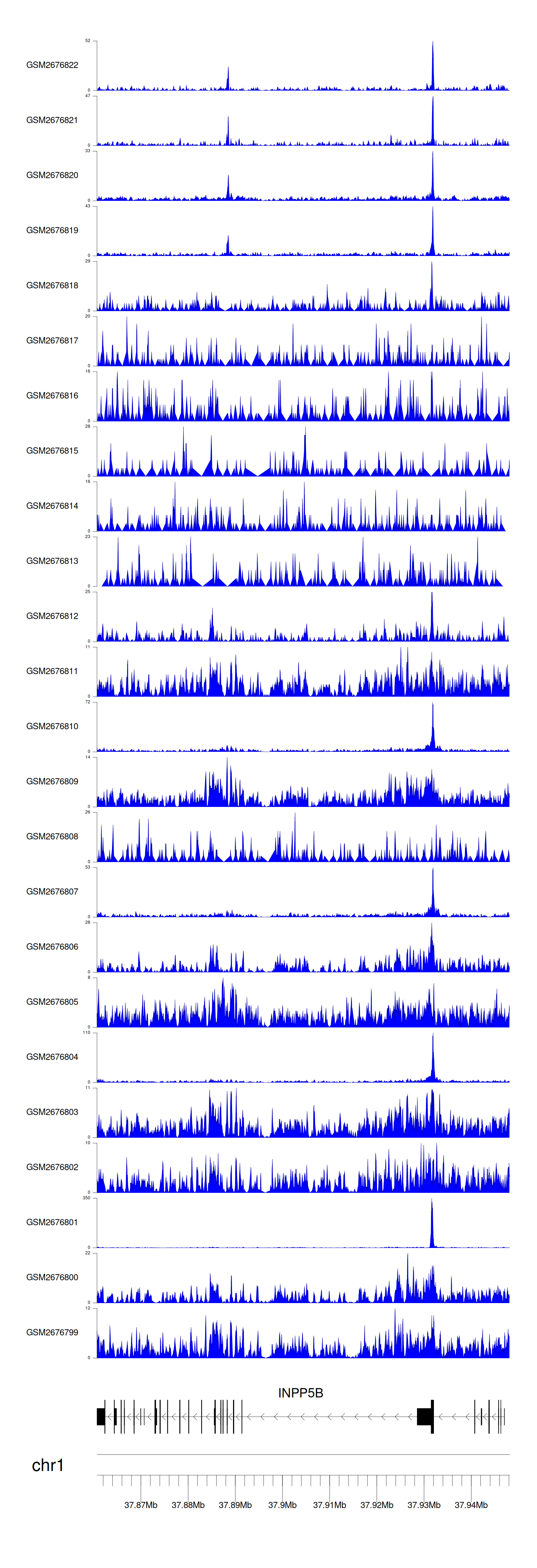 > Dataset: GSE100376 - INPP5B peak across samples