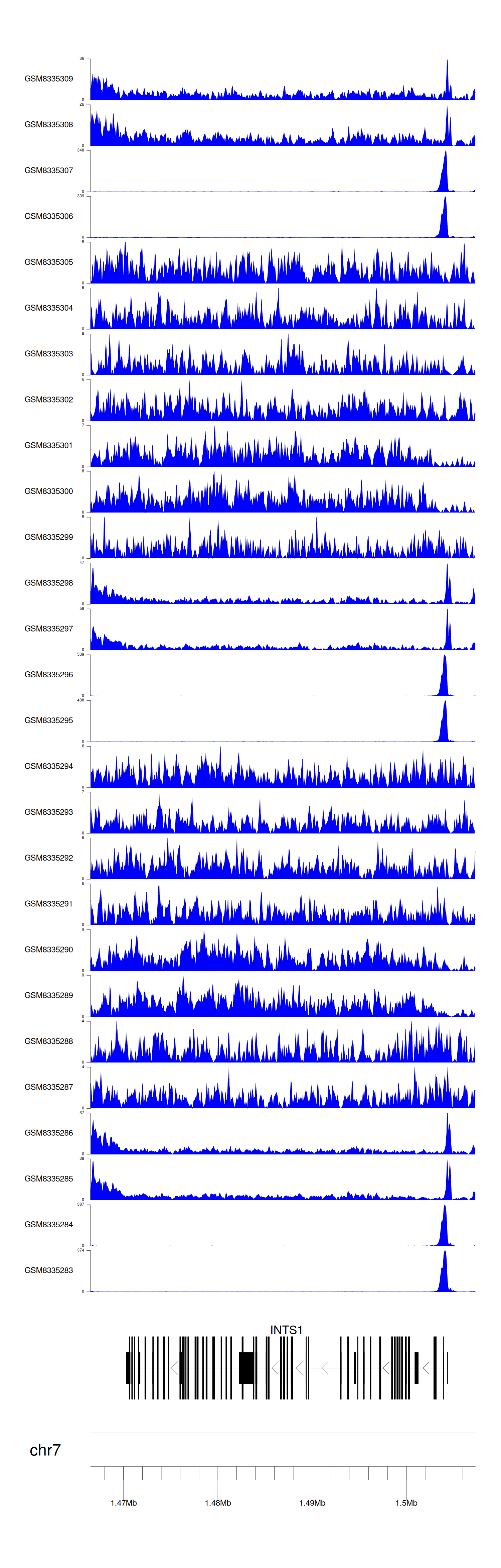 > Dataset: GSE270130 - INTS1 peak across samples
