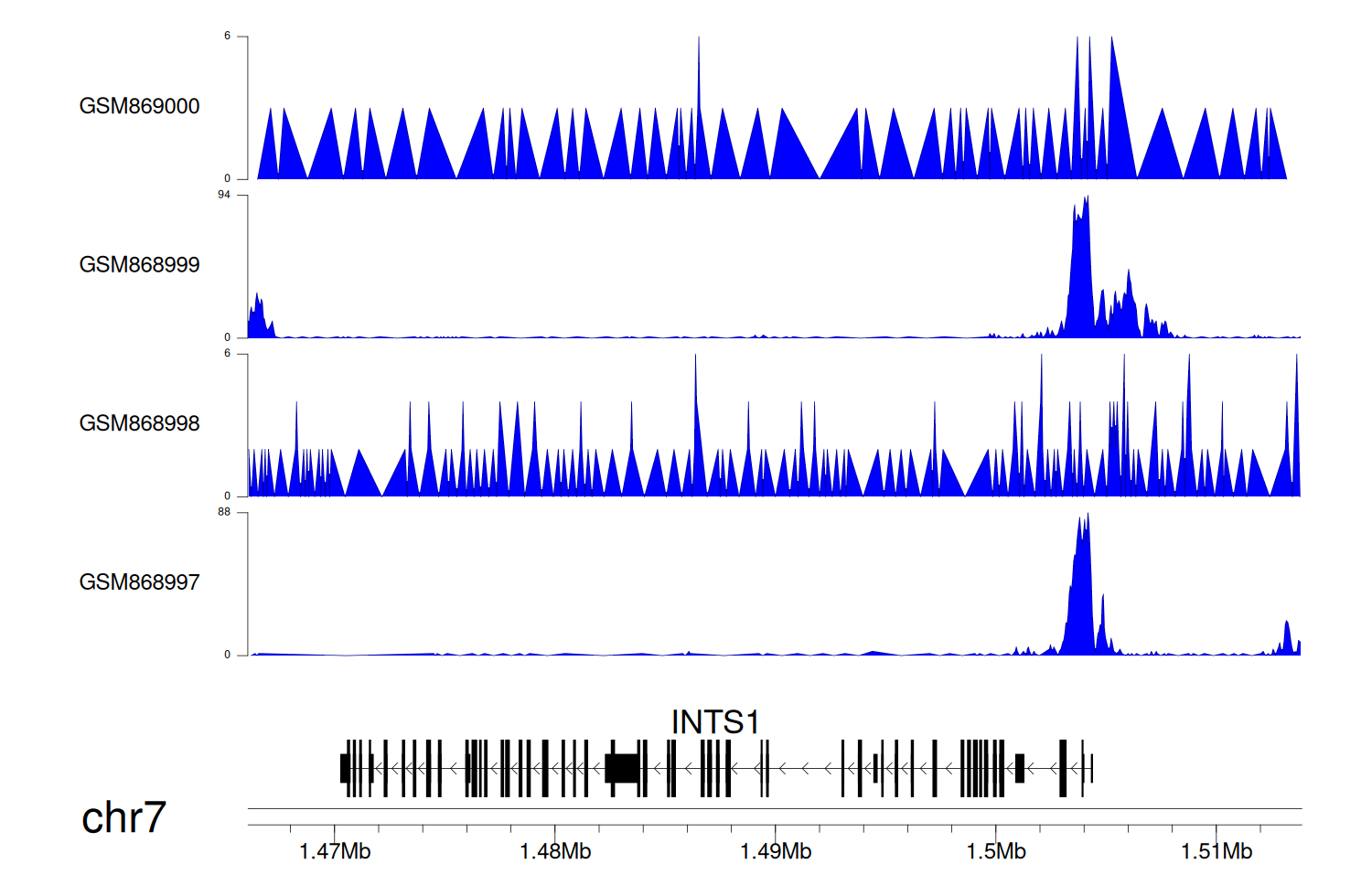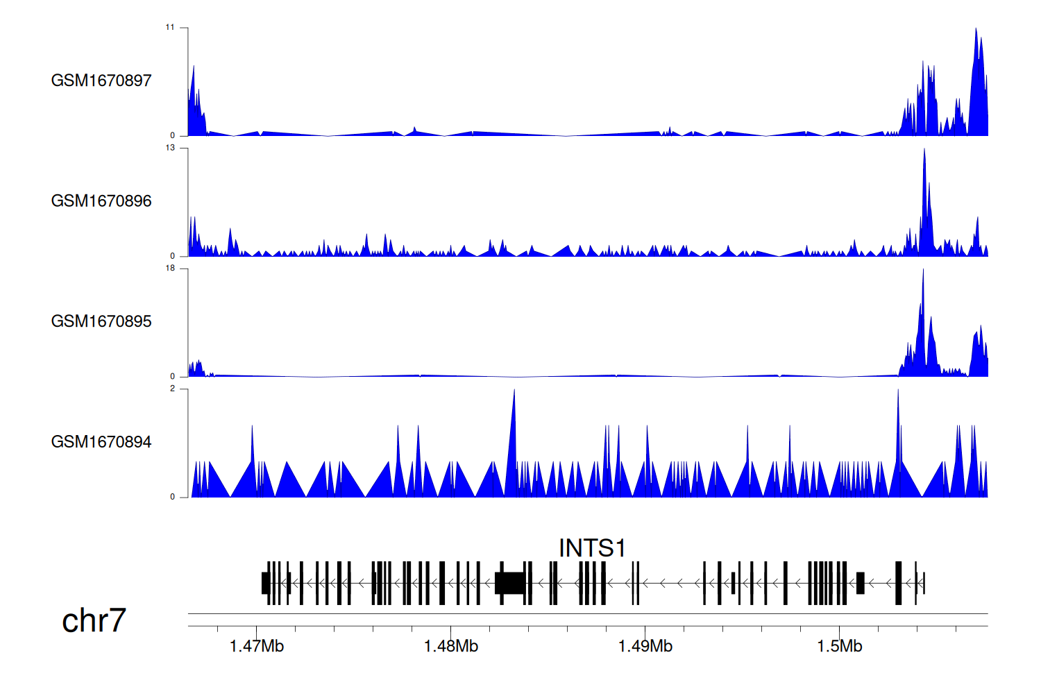 > Dataset: GSE68402 - INTS1 peak across samples