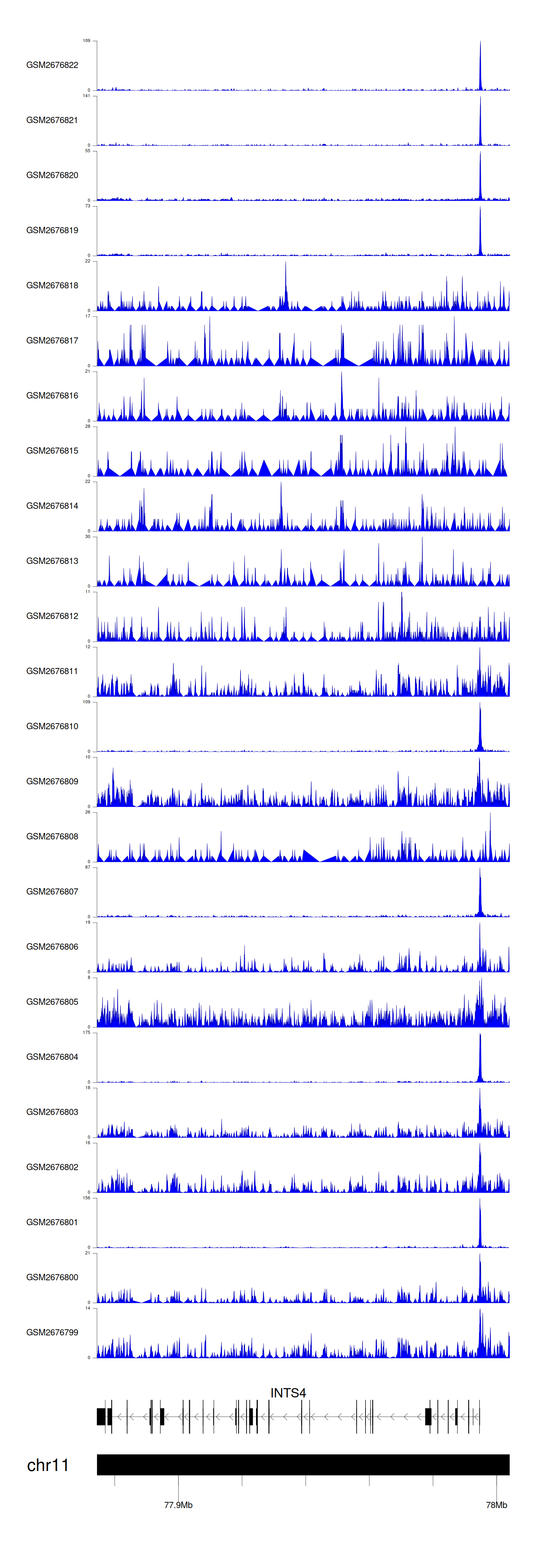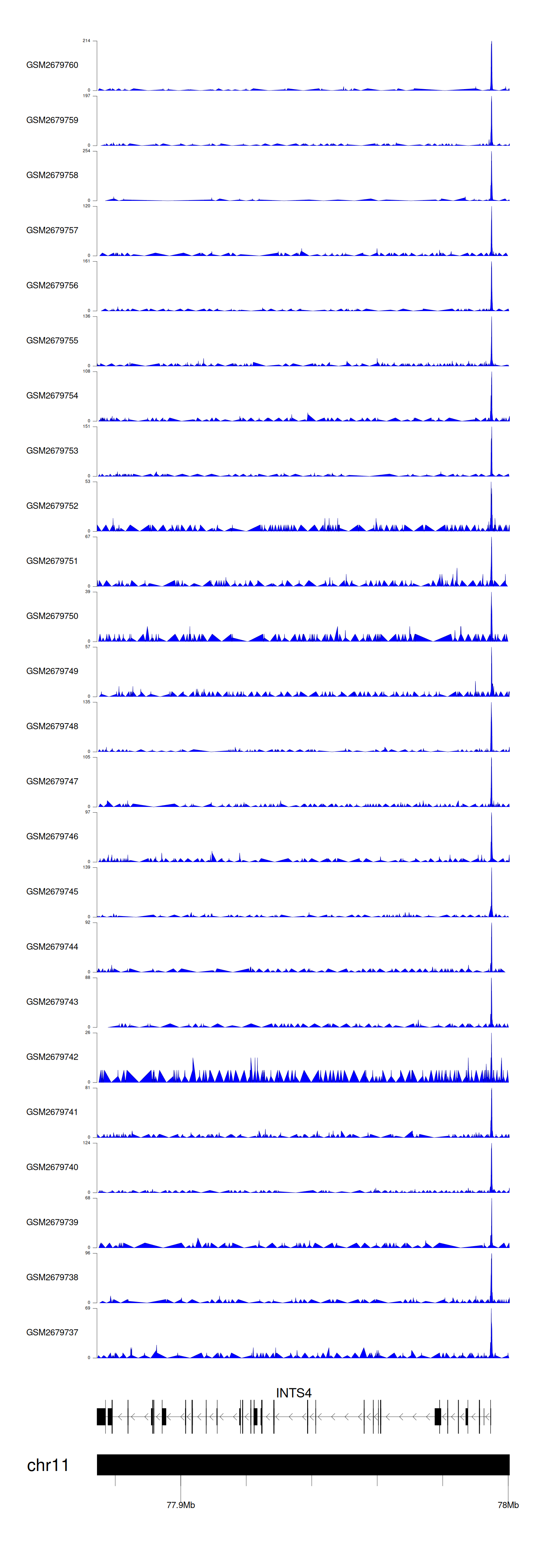 > Dataset: GSE211651 - INTS4 peak across samples