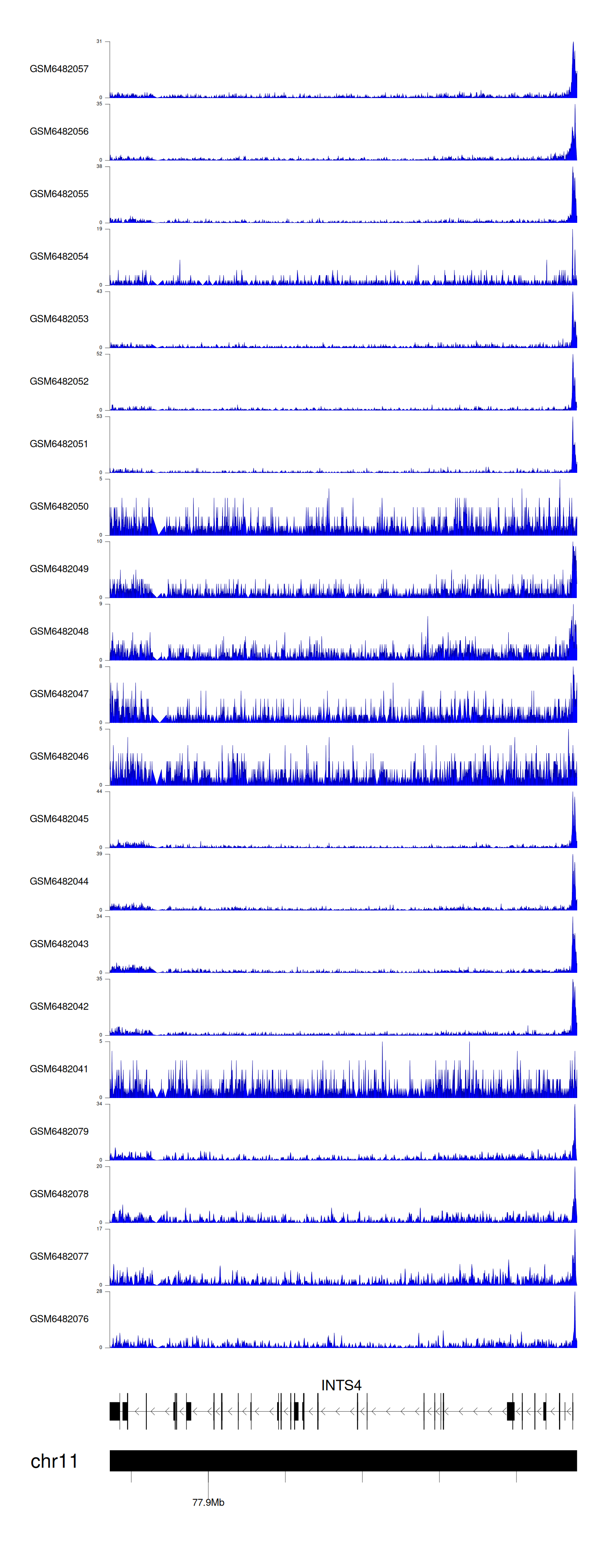 > Dataset: GSE165705 - INTS4 peak across samples