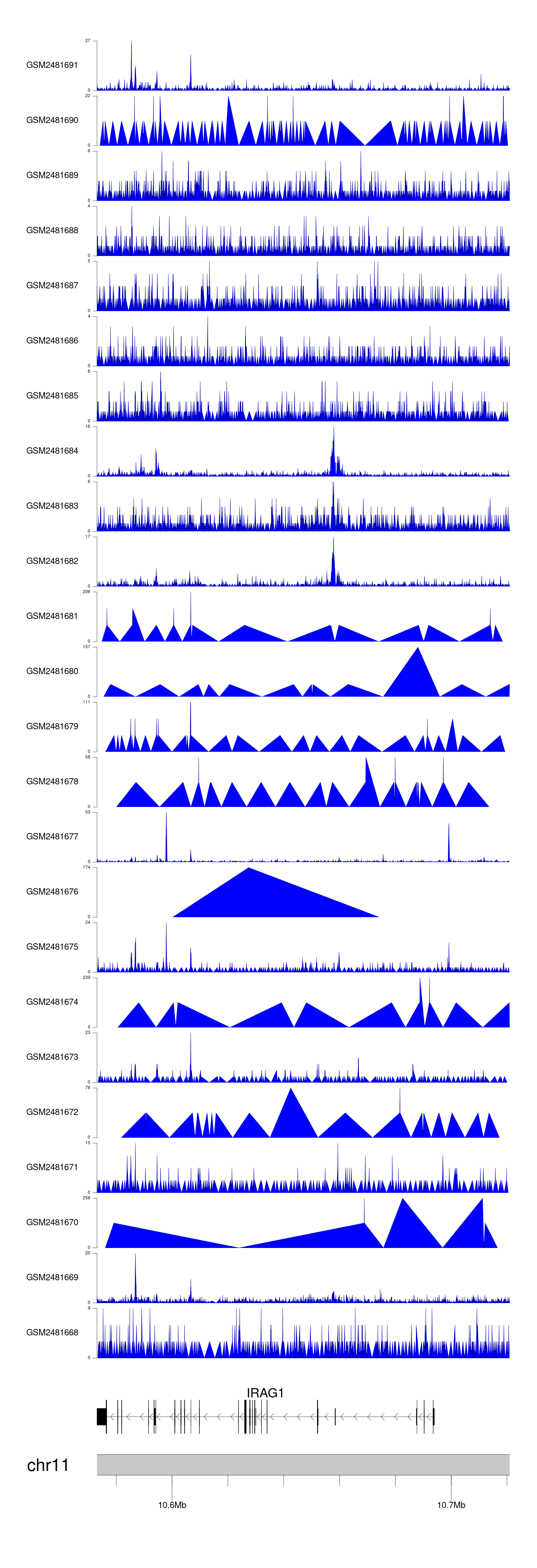 > Dataset: GSE94732 - IRAG1 peak across samples