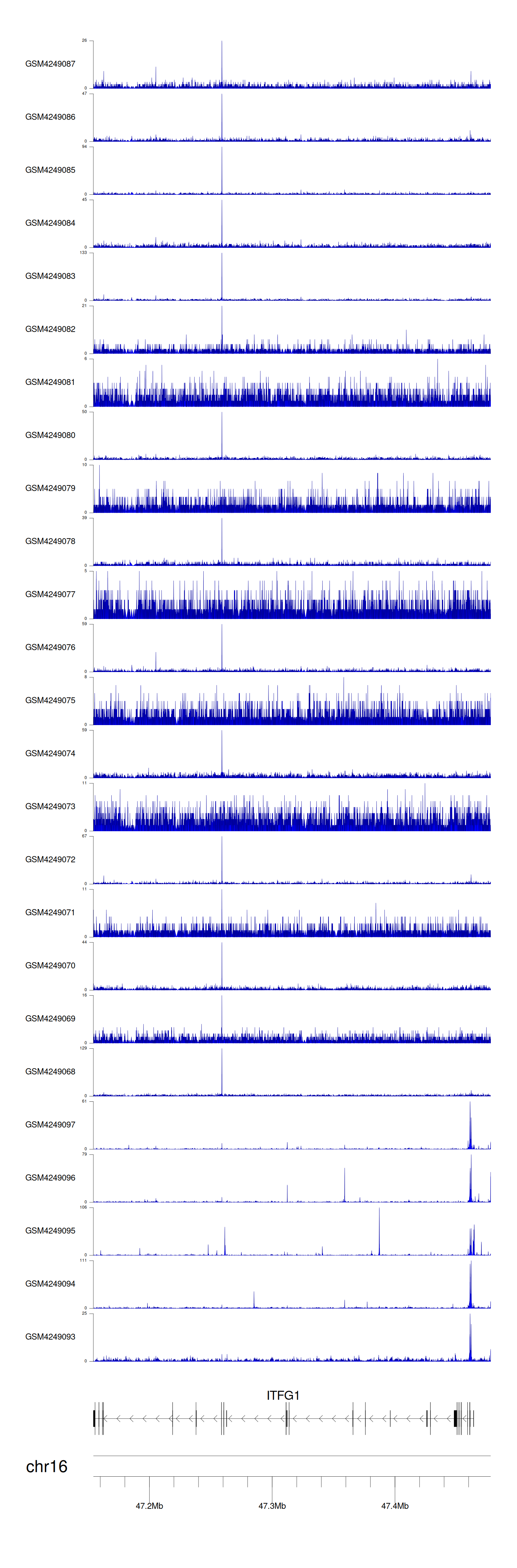 > Dataset: GSE143026 - ITFG1 peak across samples