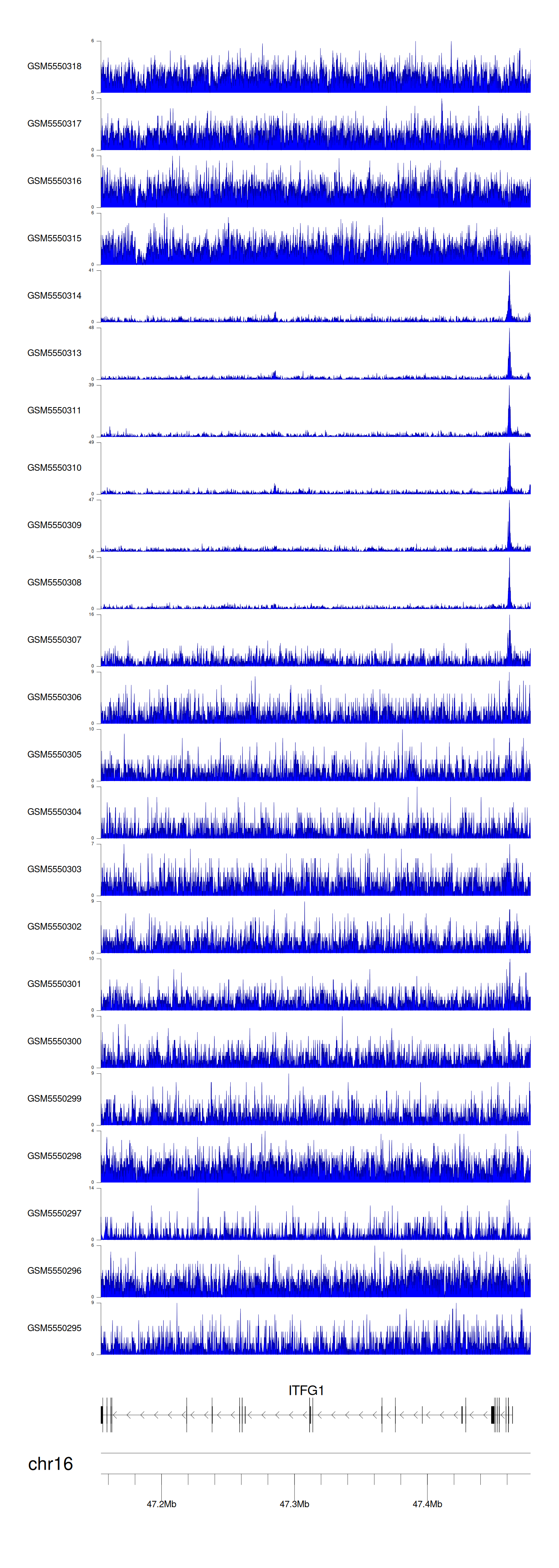 > Dataset: GSE183048 - ITFG1 peak across samples