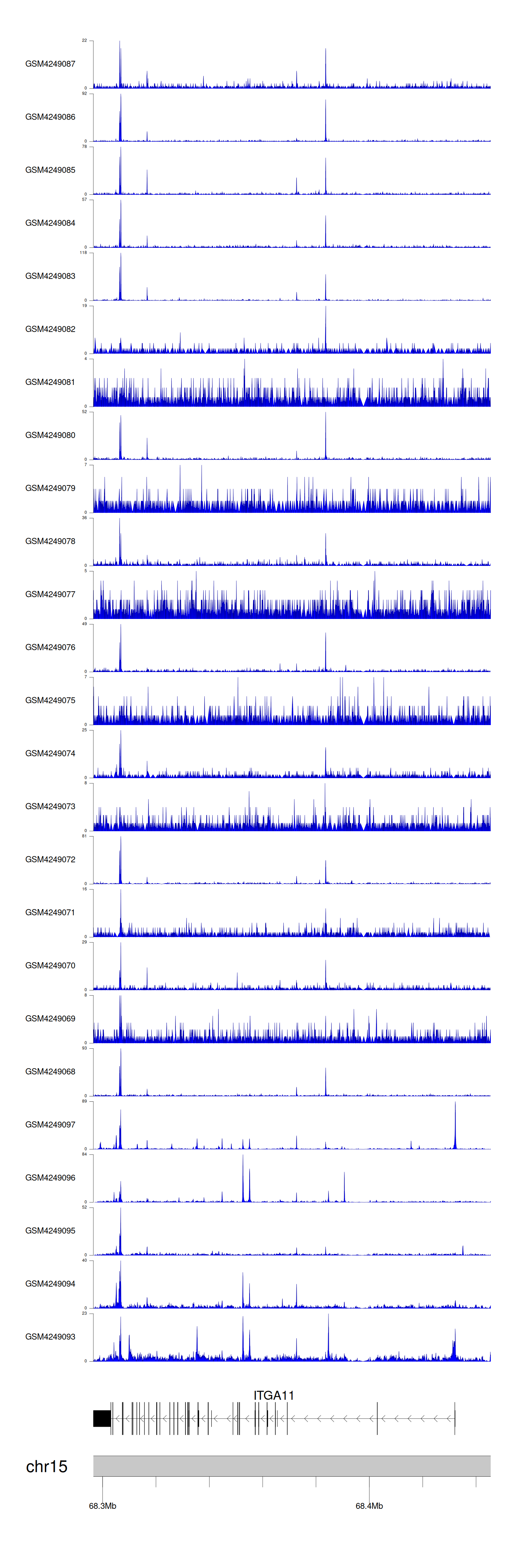 > Dataset: GSE143026 - ITGA11 peak across samples