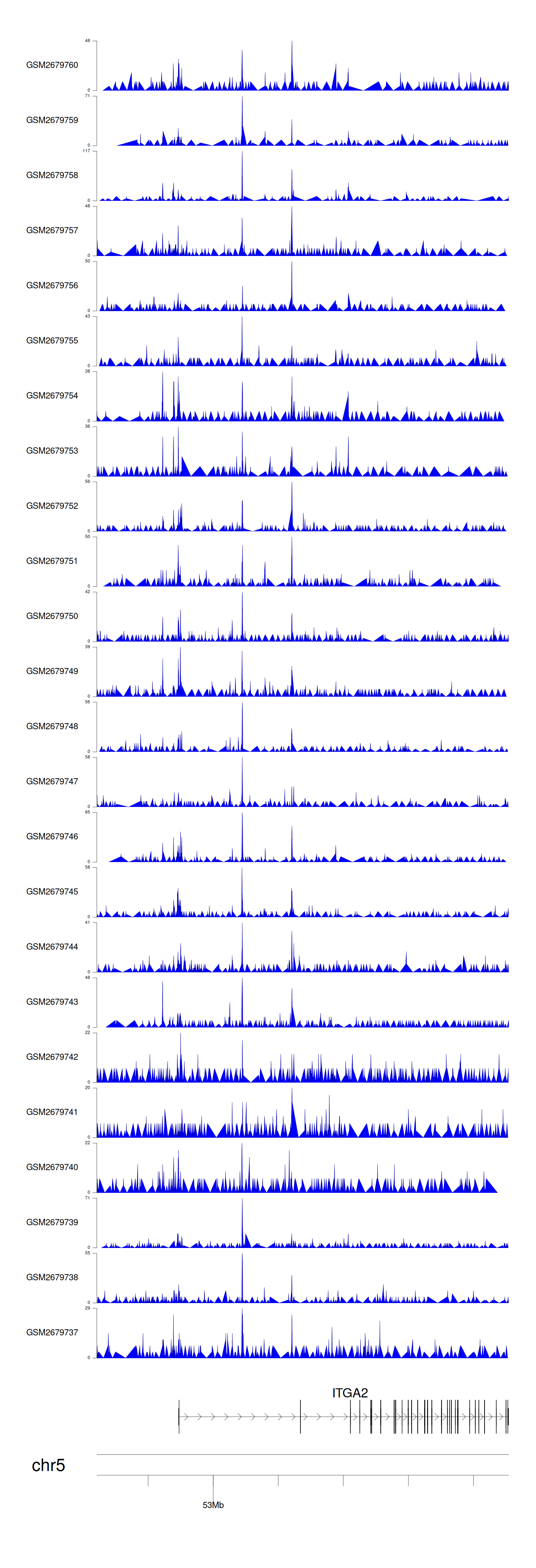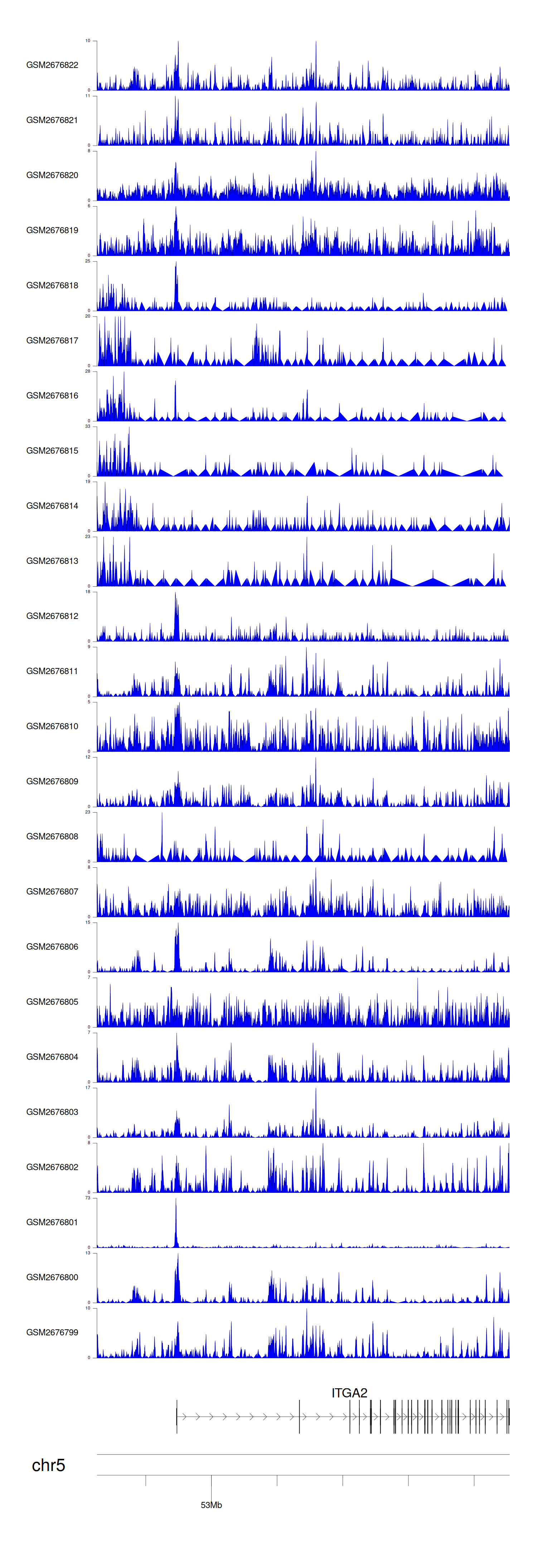 > Dataset: GSE100376 - ITGA2 peak across samples