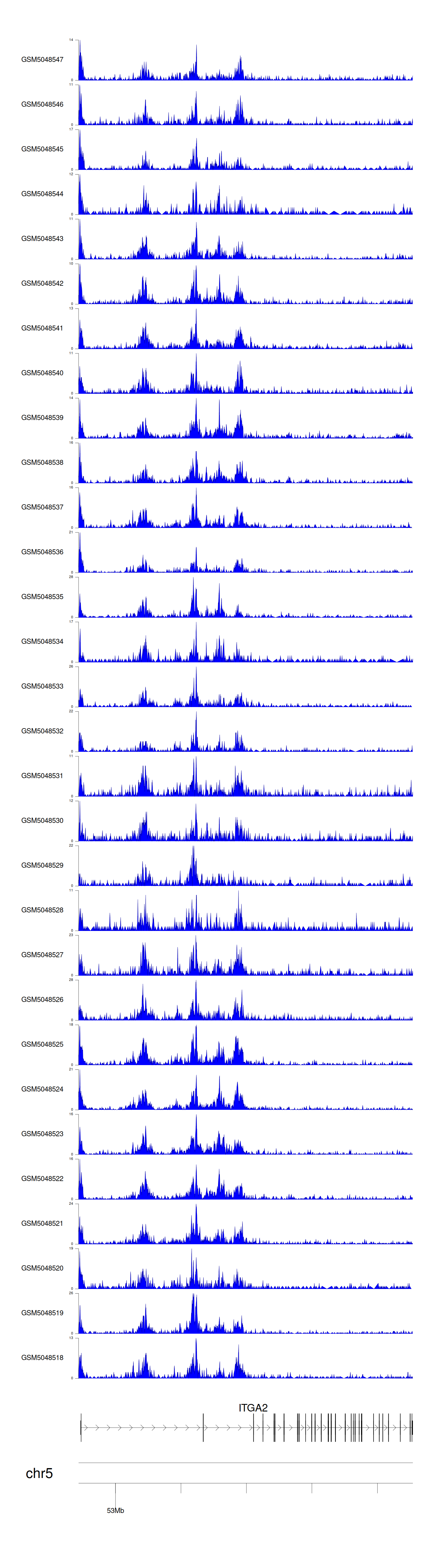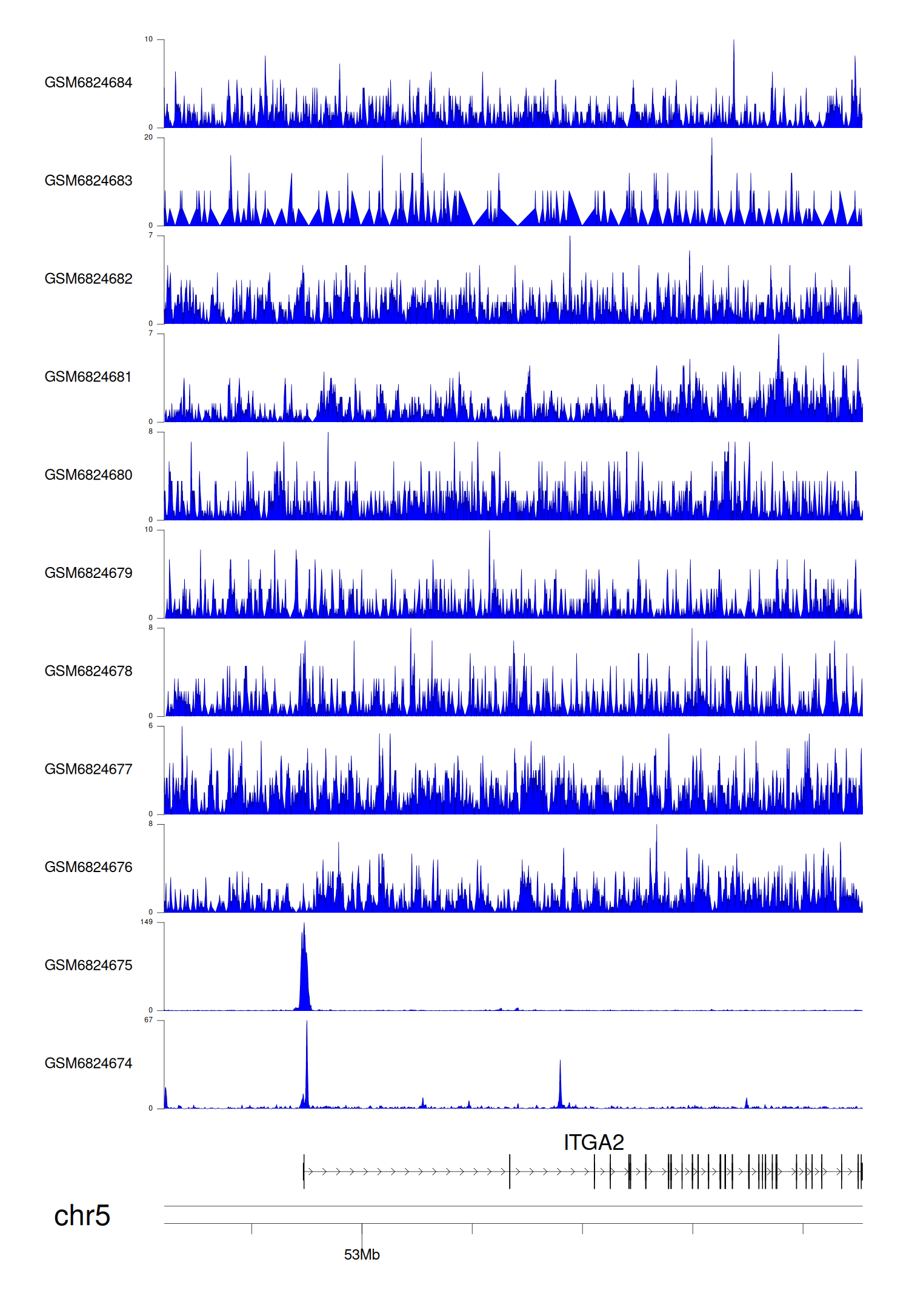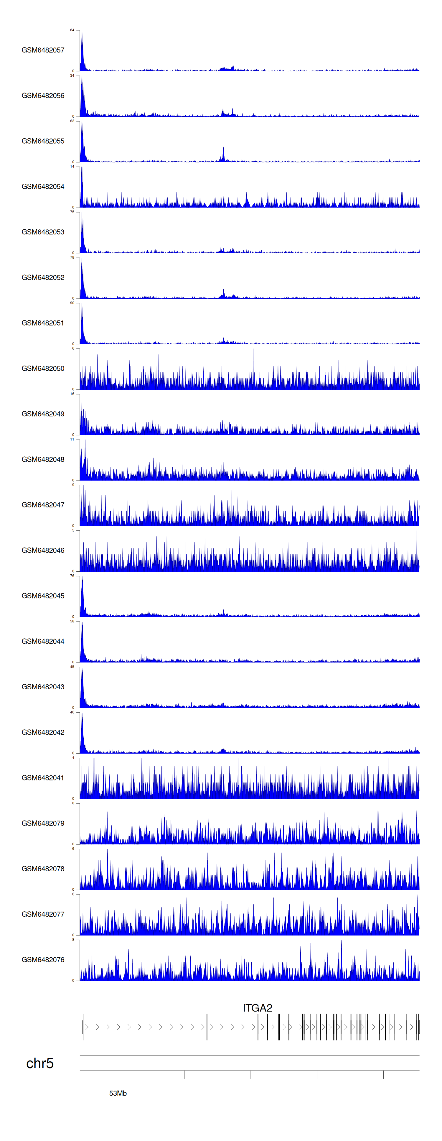 > Dataset: GSE211651 - ITGA2 peak across samples