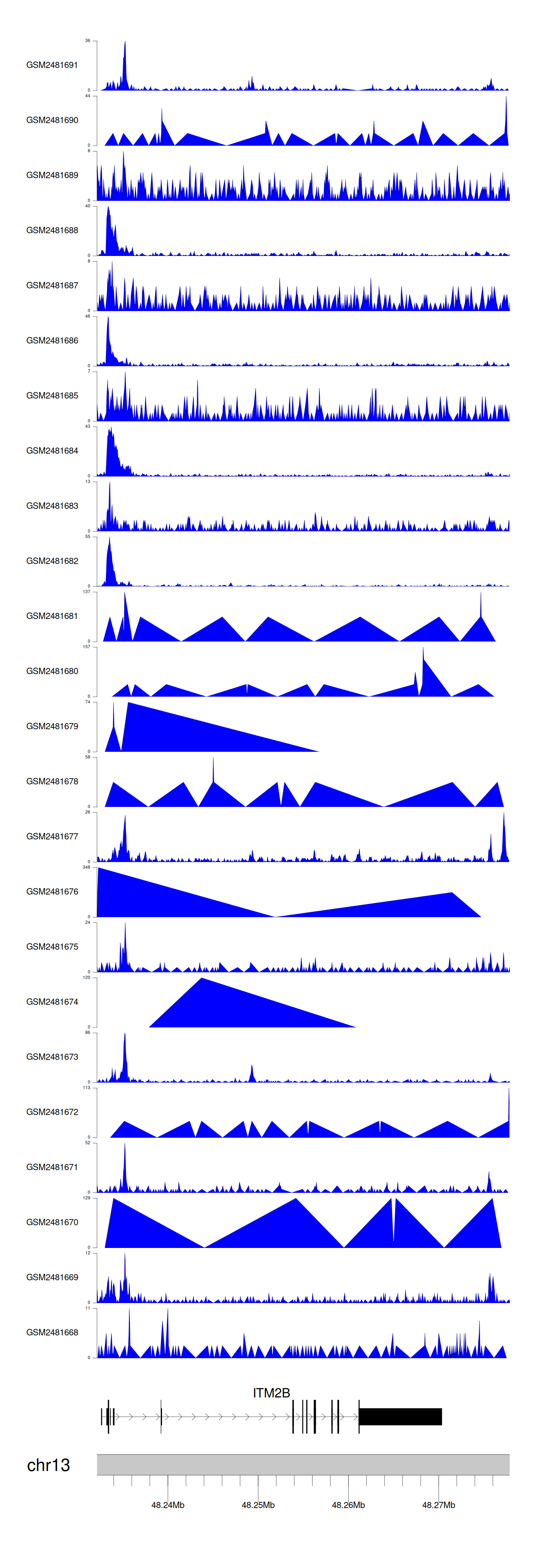 > Dataset: GSE94732 - ITM2B peak across samples