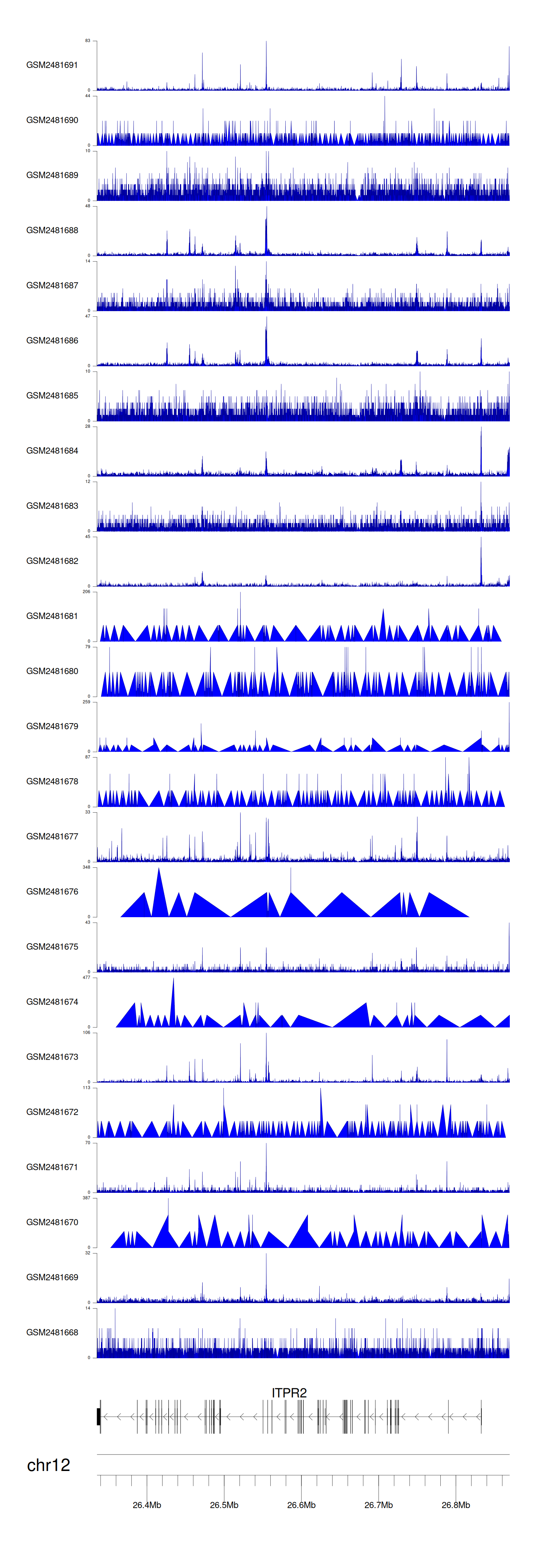 > Dataset: GSE94732 - ITPR2 peak across samples
