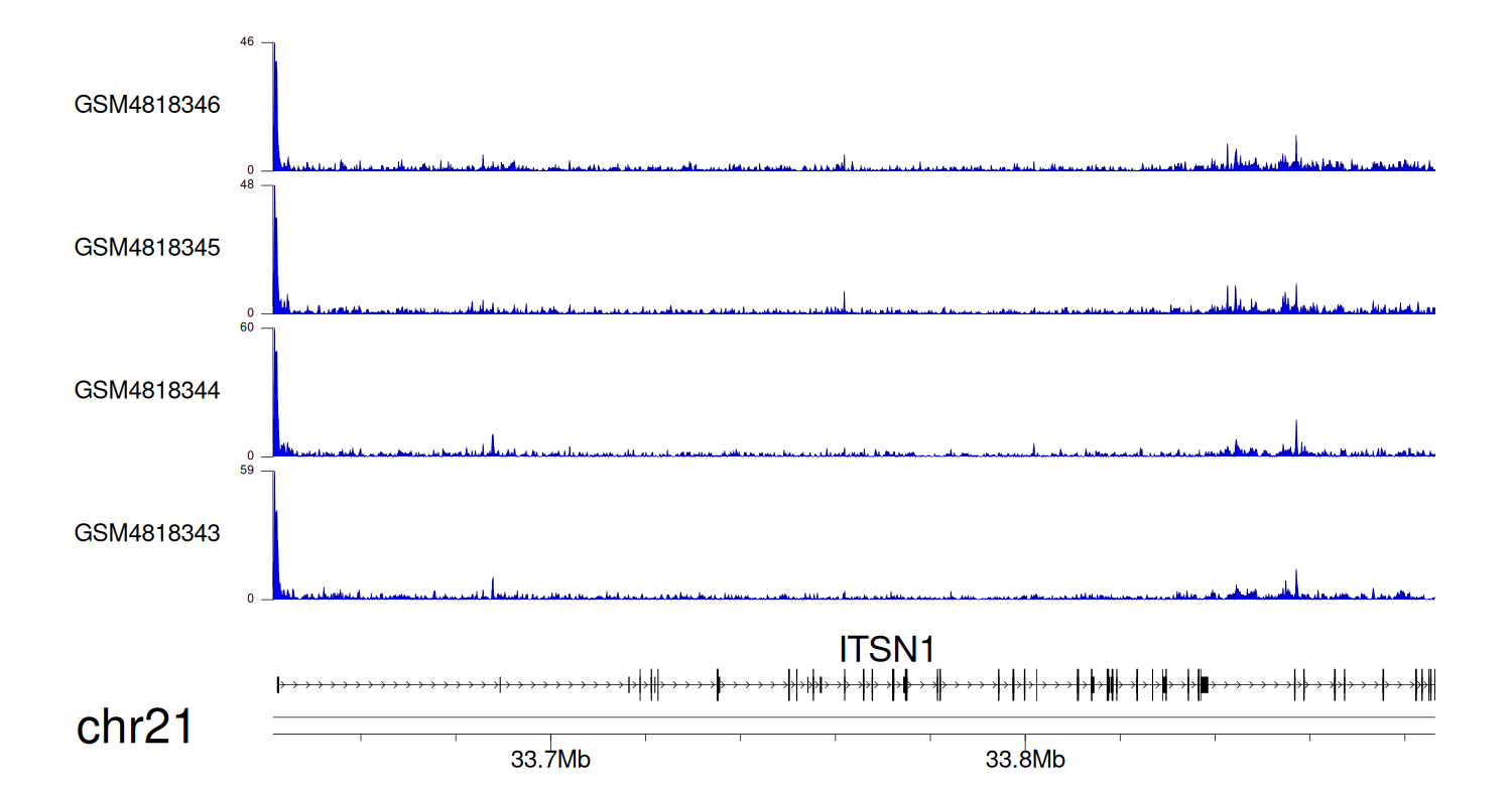 > Dataset: GSE131257 - ITSN1 peak across samples