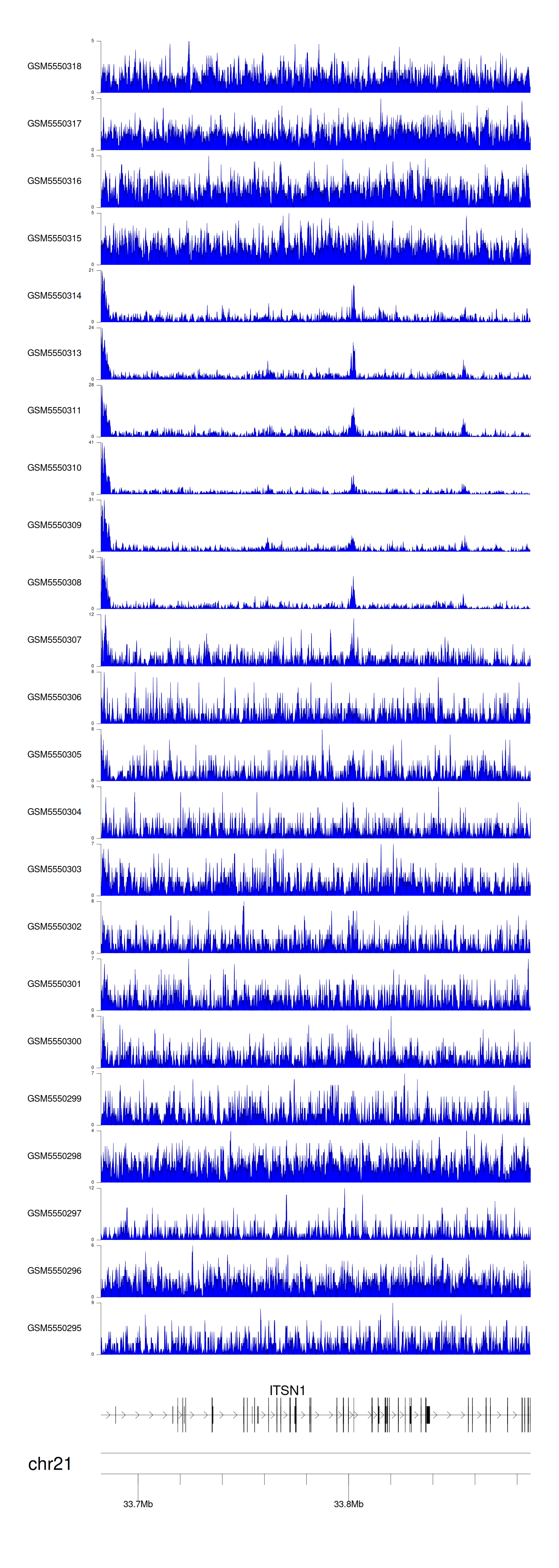 > Dataset: GSE143026 - ITSN1 peak across samples