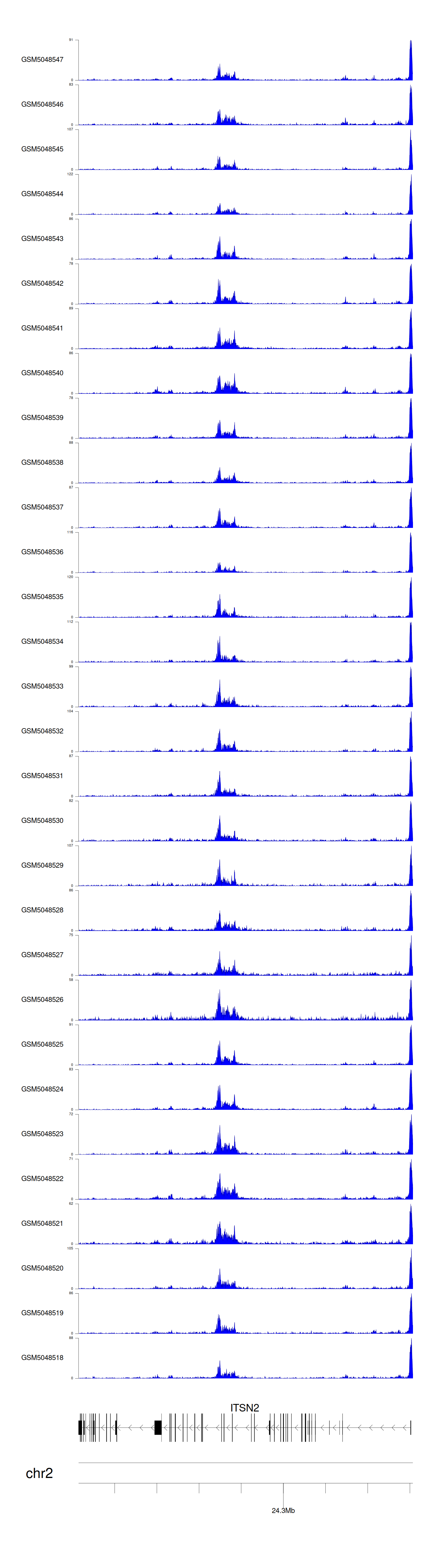 > Dataset: GSE30738 - ITSN2 peak across samples