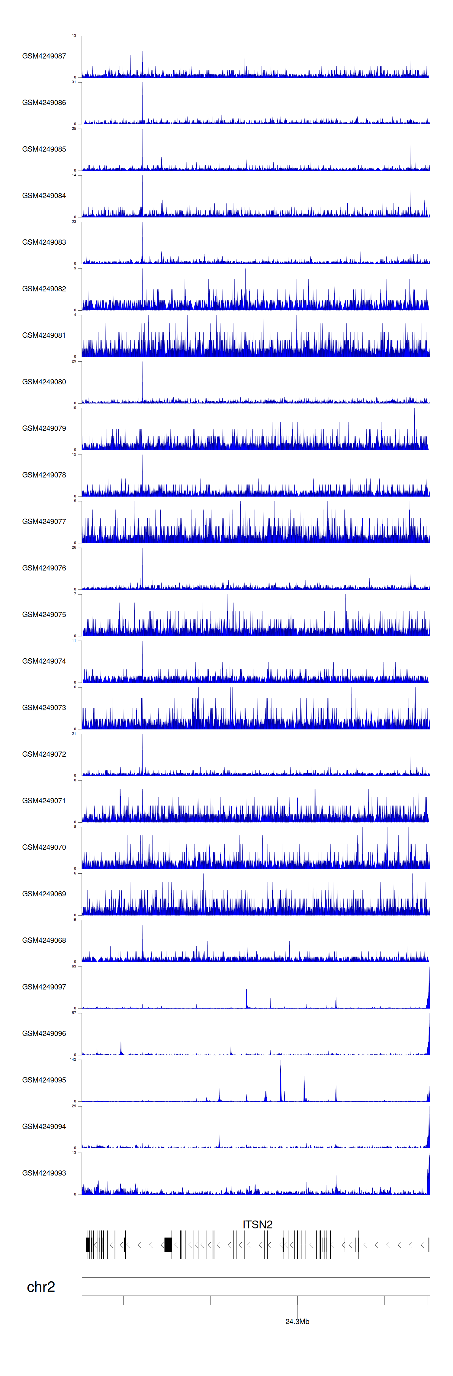 > Dataset: GSE143026 - ITSN2 peak across samples