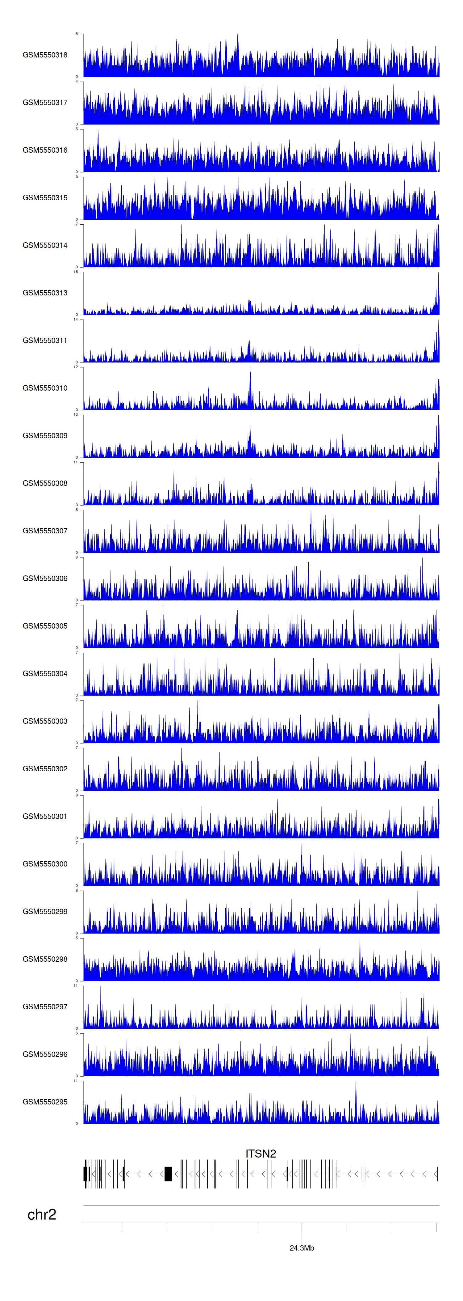 > Dataset: GSE183048 - ITSN2 peak across samples