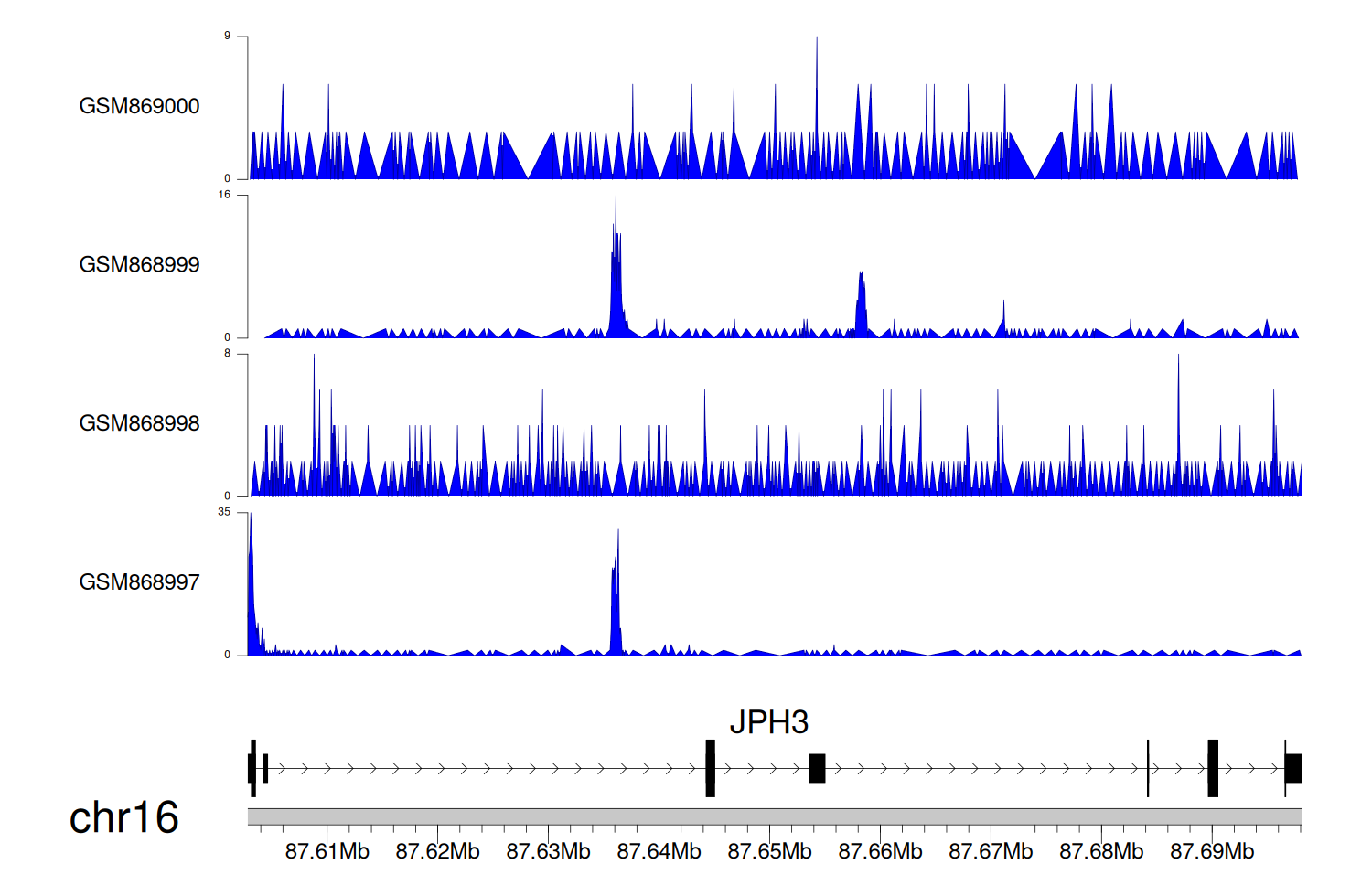 > Dataset: GSE35465 - JPH3 peak across samples