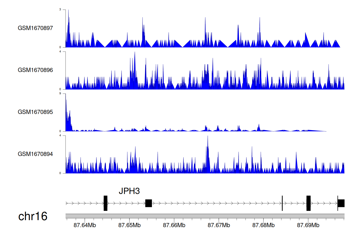 > Dataset: GSE68402 - JPH3 peak across samples