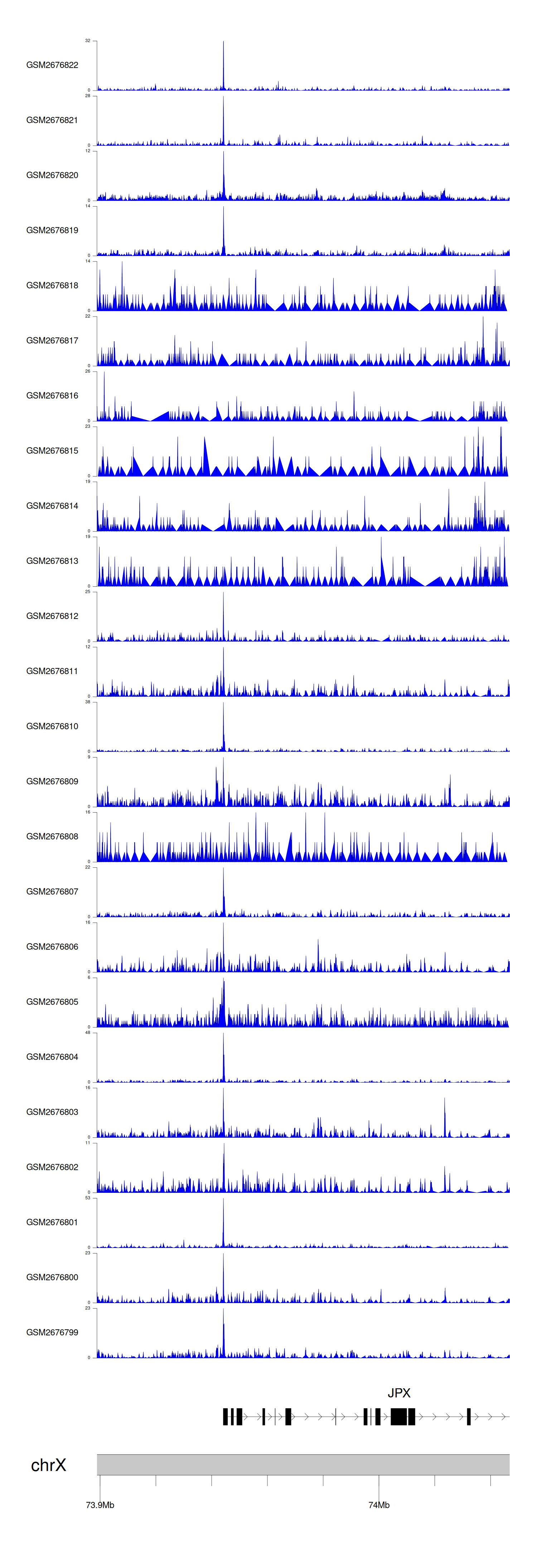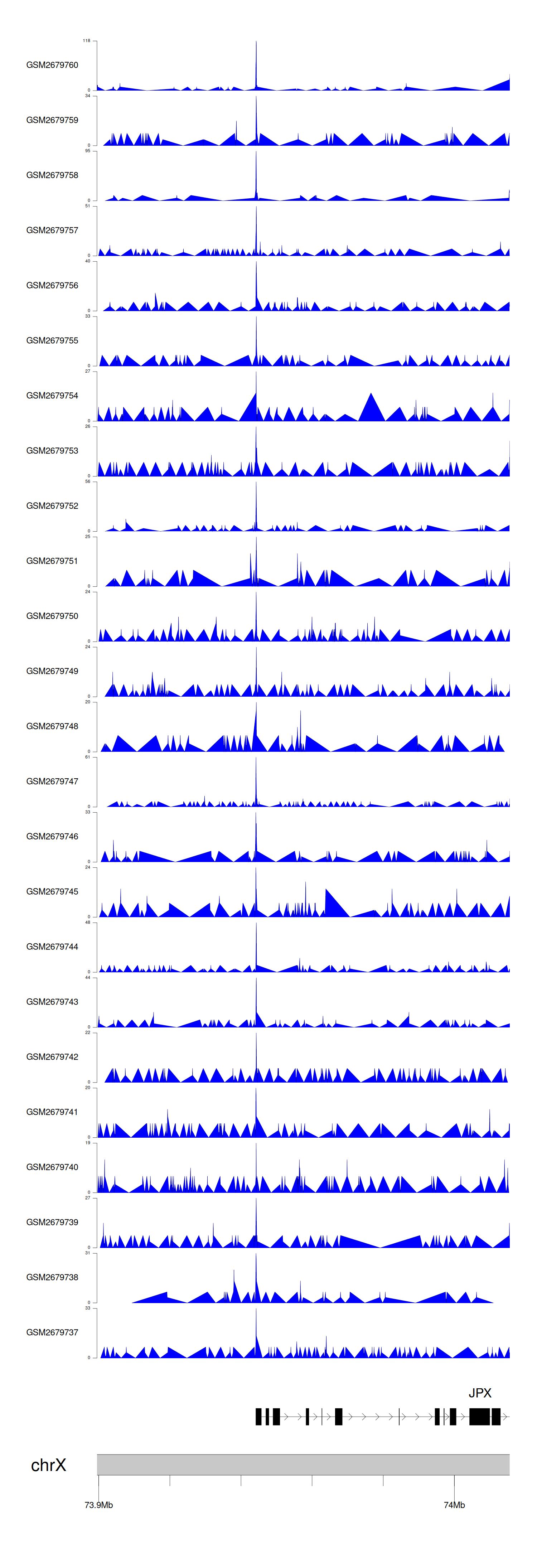 > Dataset: GSE30738 - JPX peak across samples