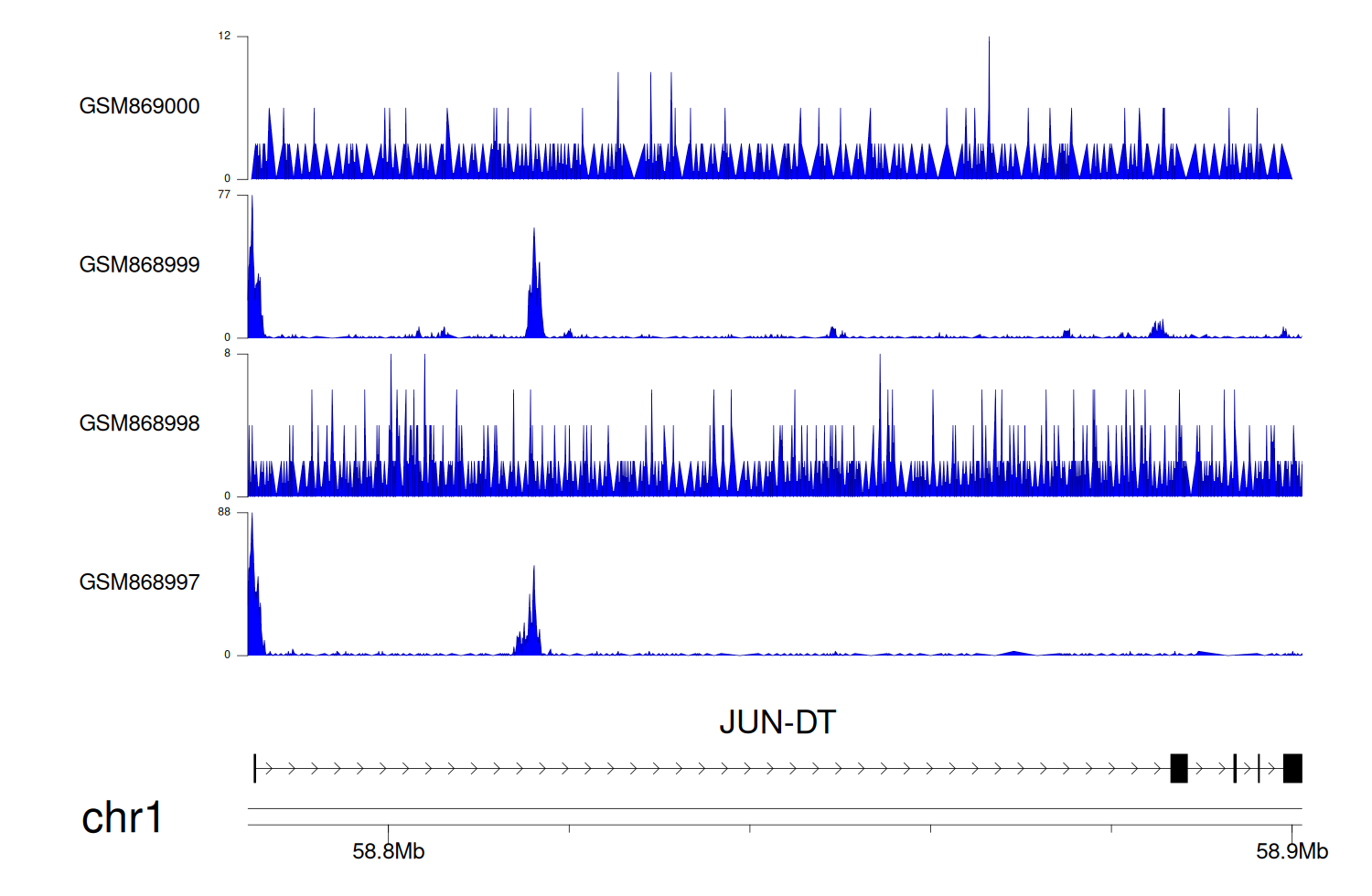 > Dataset: GSE68402 - JUN-DT peak across samples