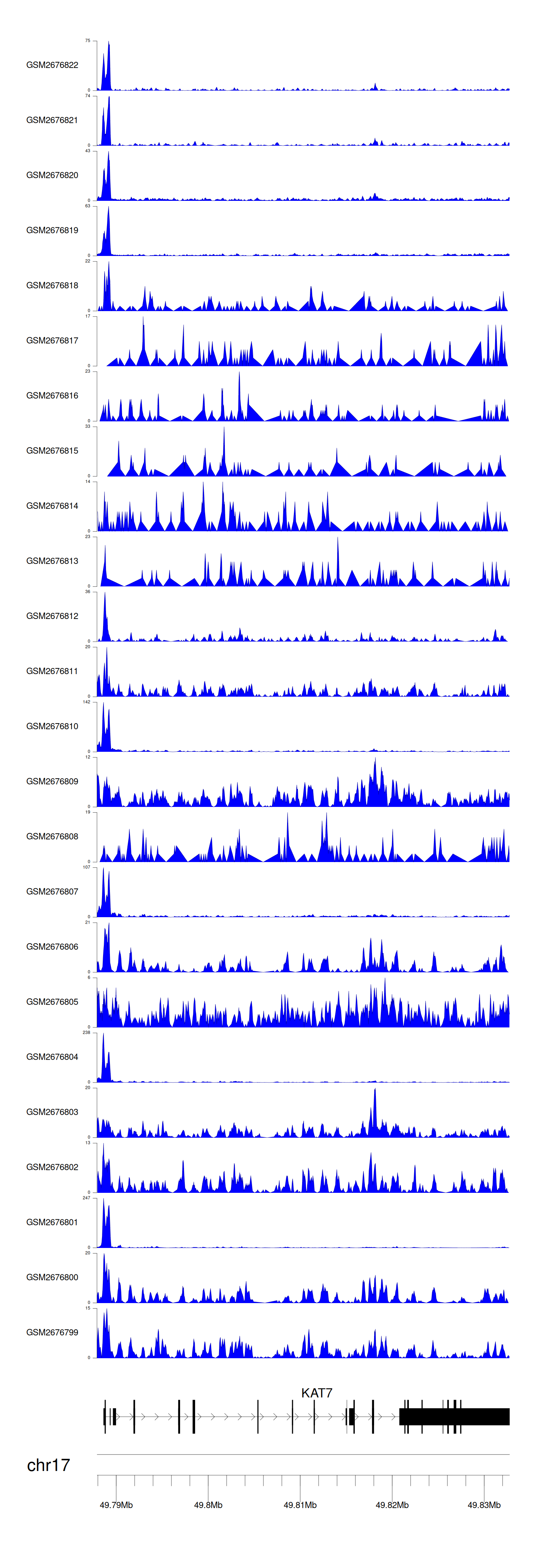 > Dataset: GSE221688 - KAT7 peak across samples