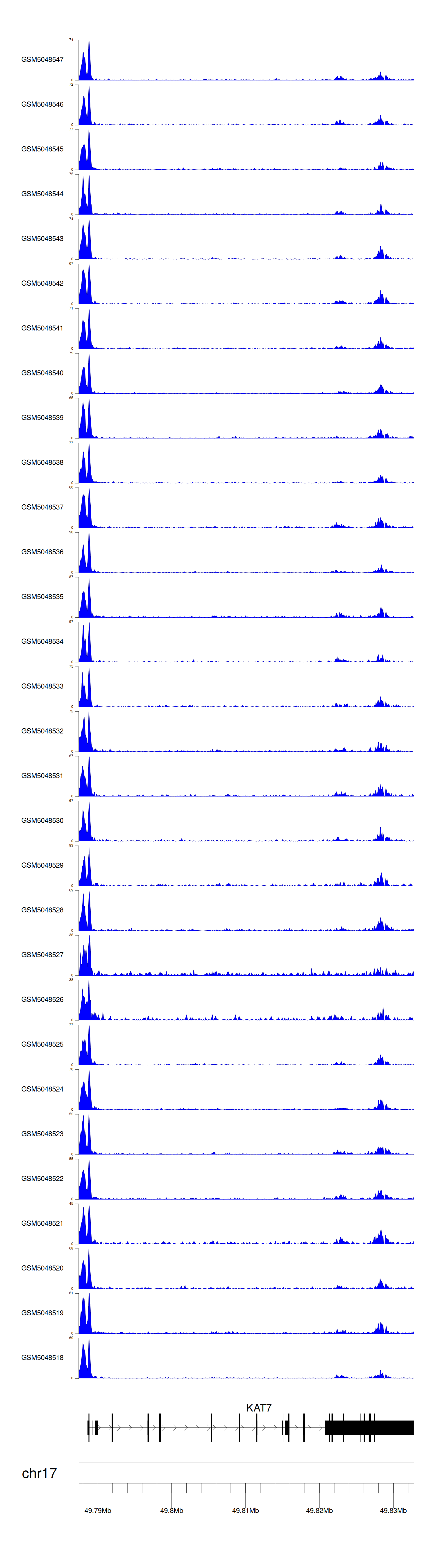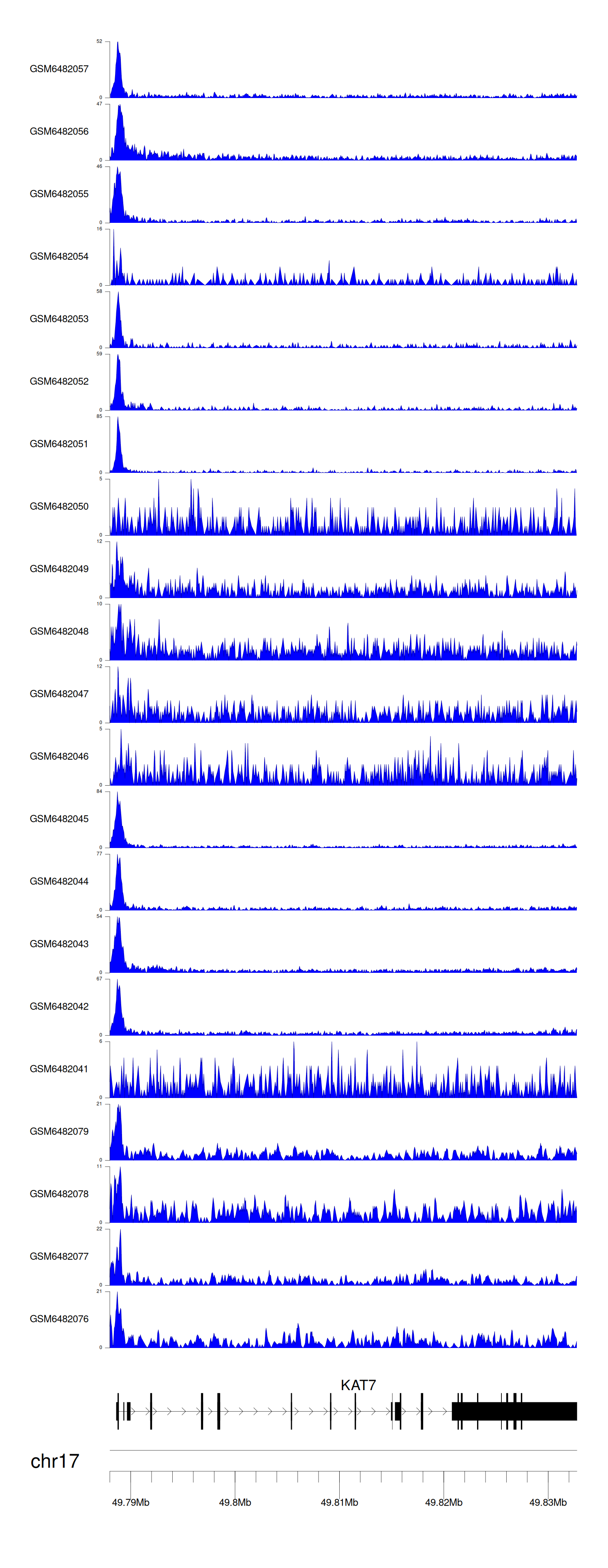 > Dataset: GSE165703 - KAT7 peak across samples