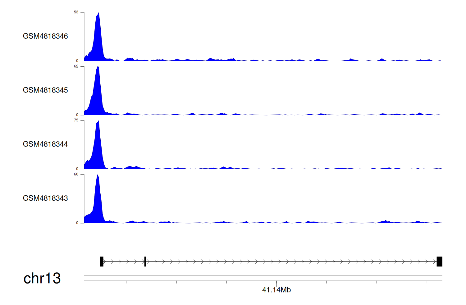 > Dataset: GSE131257 - KBTBD6-DT peak across samples