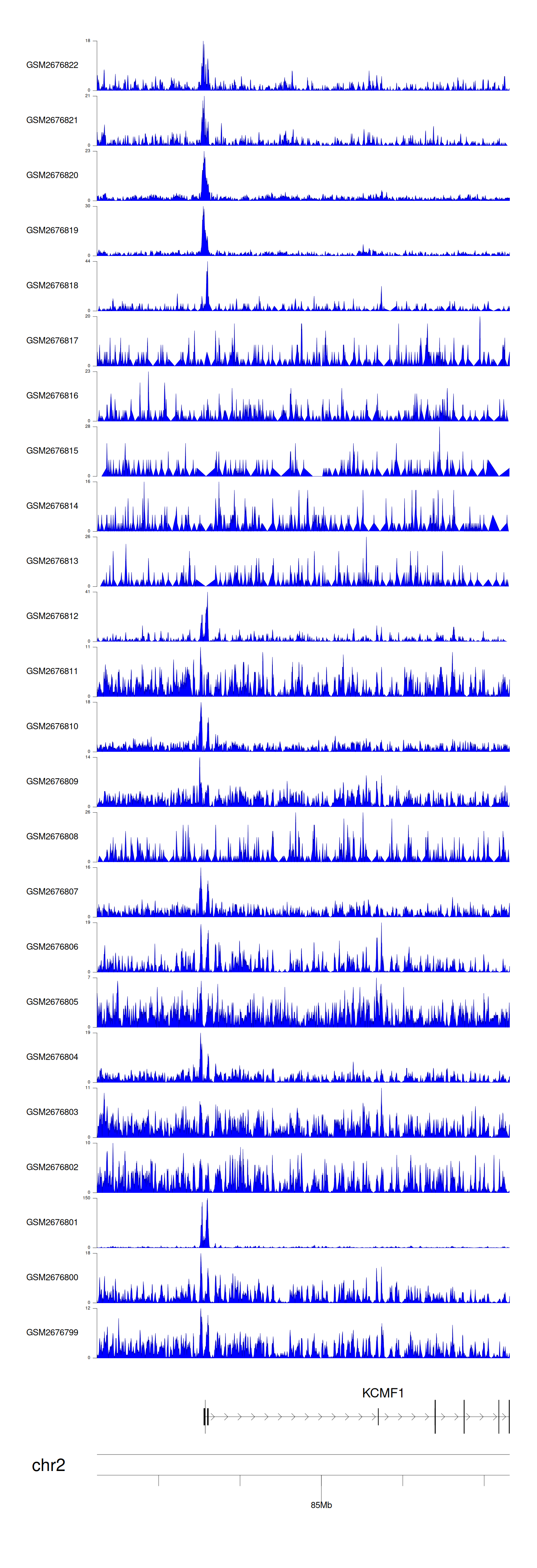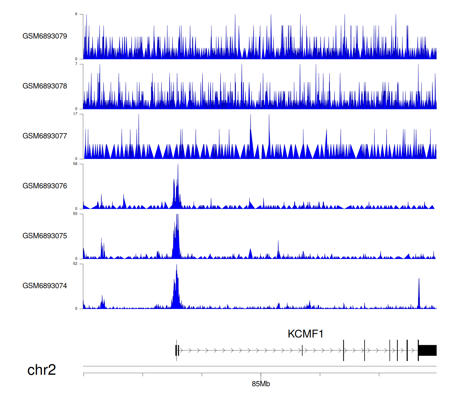 > Dataset: GSE211651 - KCMF1 peak across samples