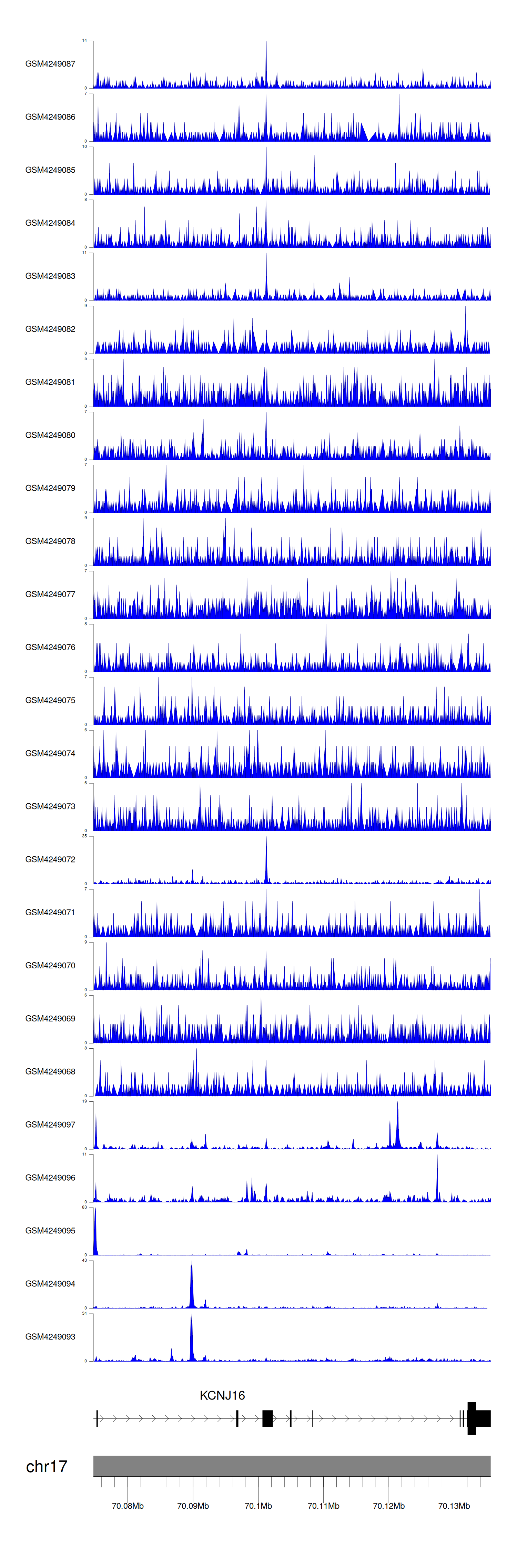 > Dataset: GSE143026 - KCNJ16 peak across samples