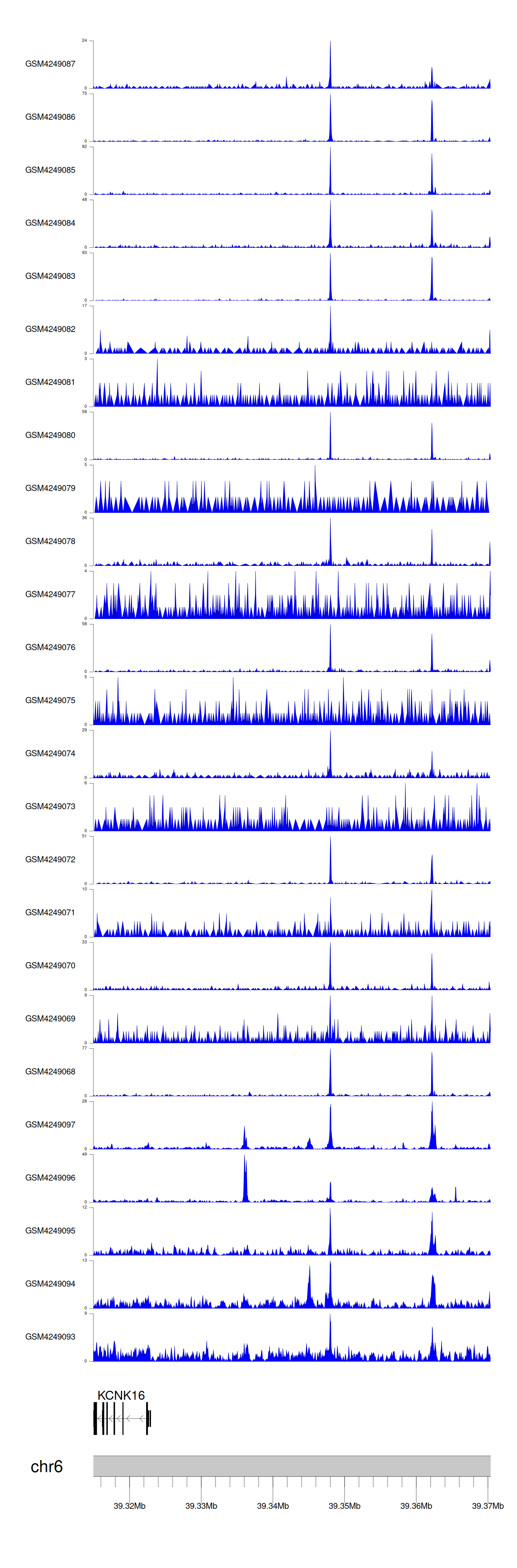 > Dataset: GSE143026 - KCNK16 peak across samples