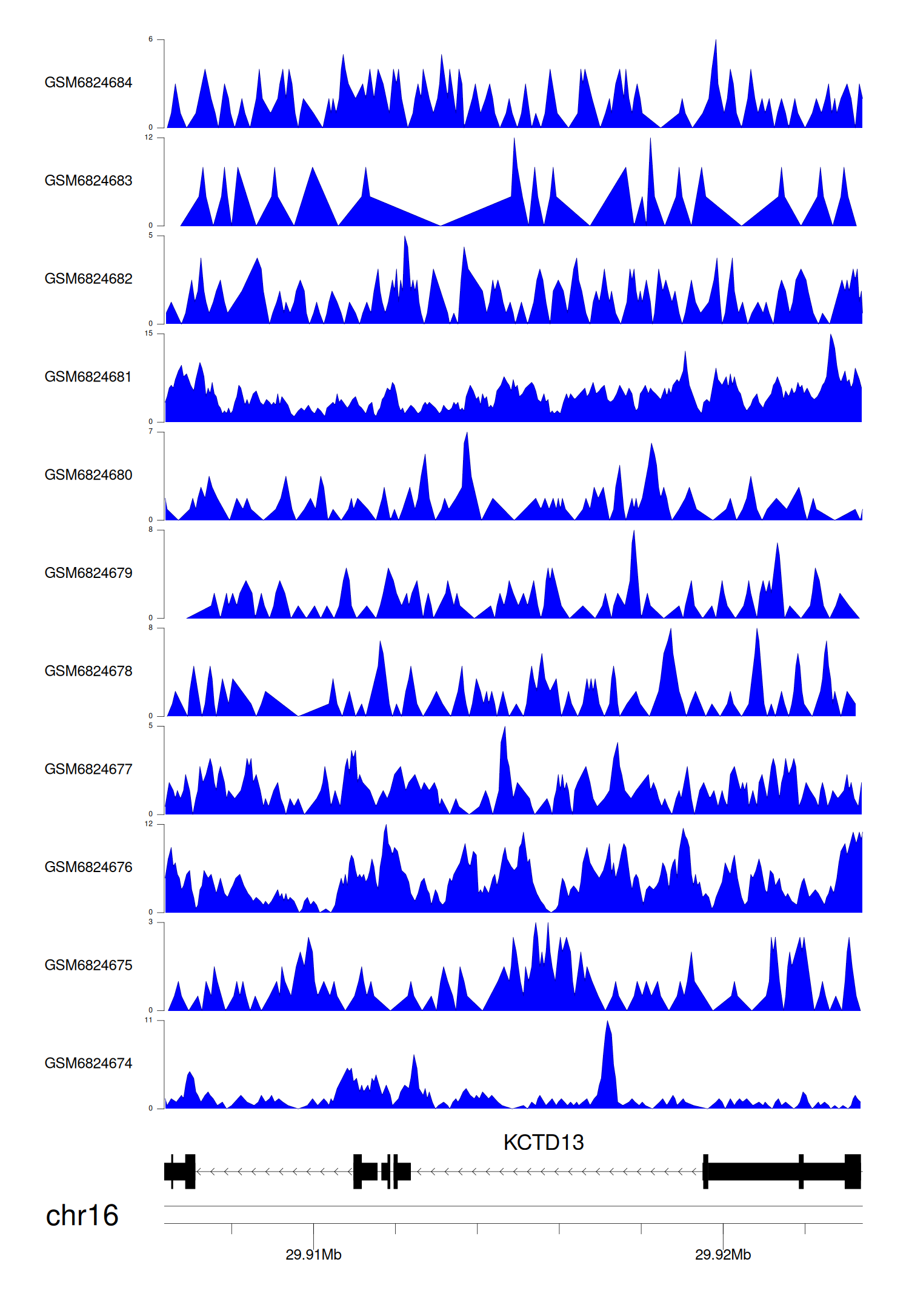 > Dataset: GSE165703 - KCTD13 peak across samples