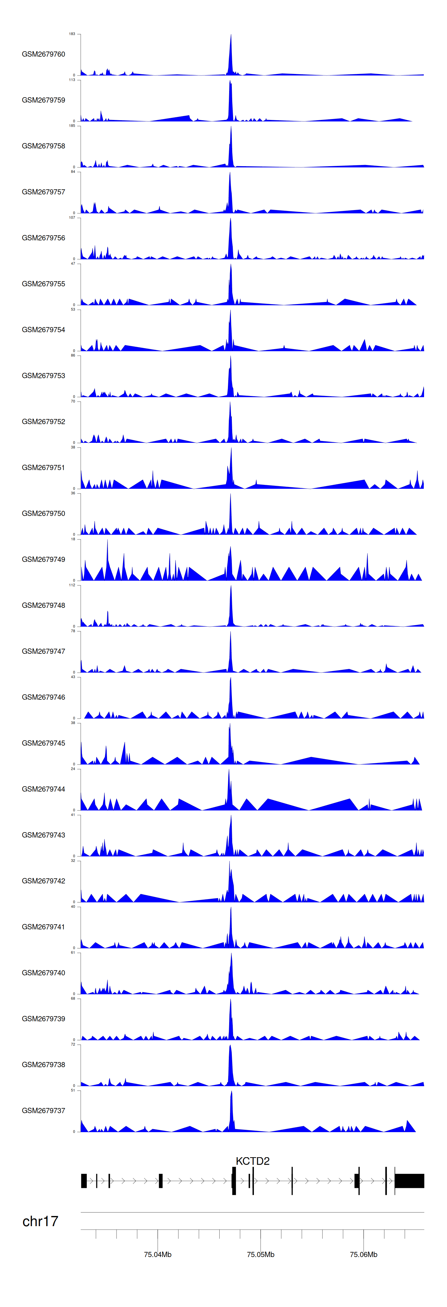 > Dataset: GSE100376 - KCTD2 peak across samples