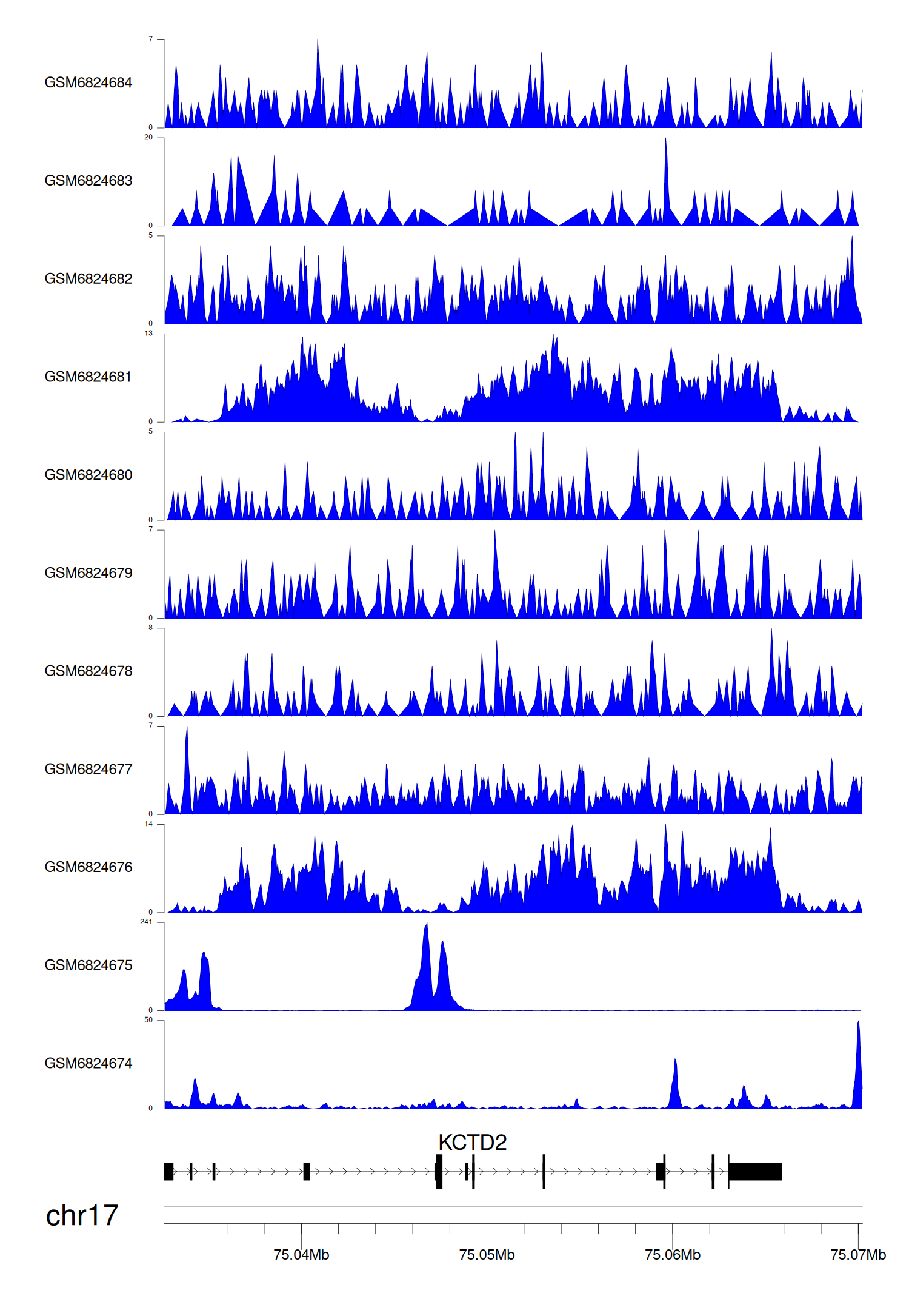 > Dataset: GSE165703 - KCTD2 peak across samples