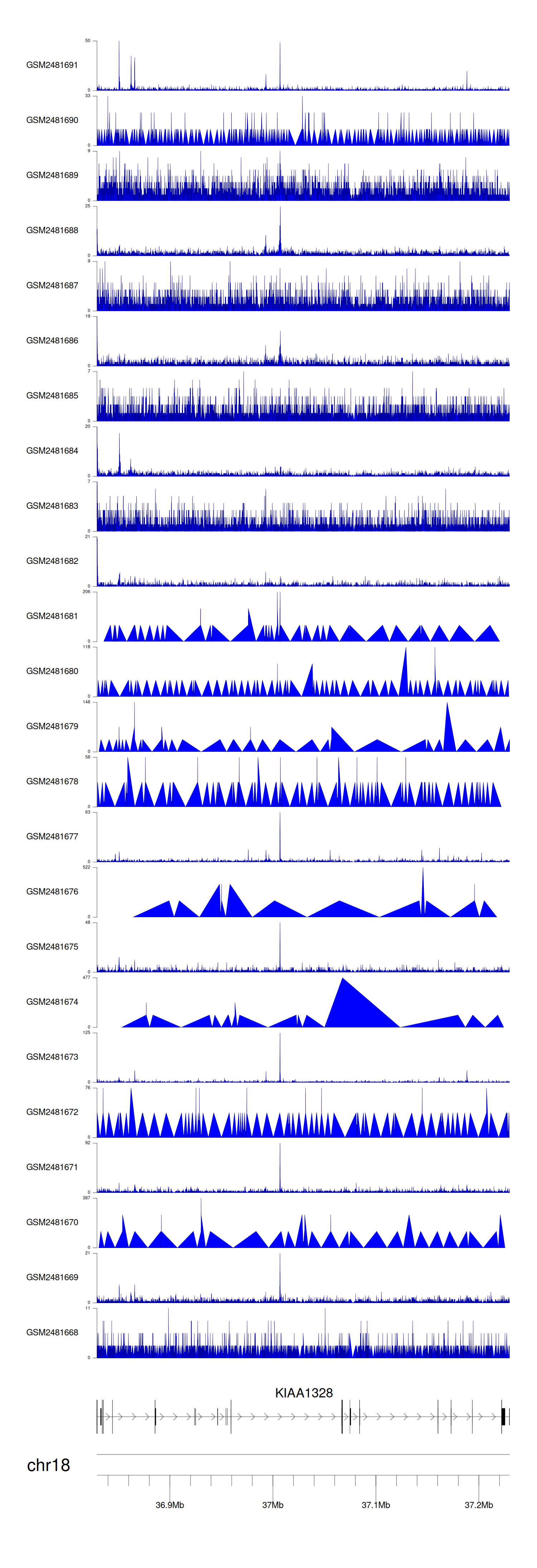 > Dataset: GSE94732 - KIAA1328 peak across samples