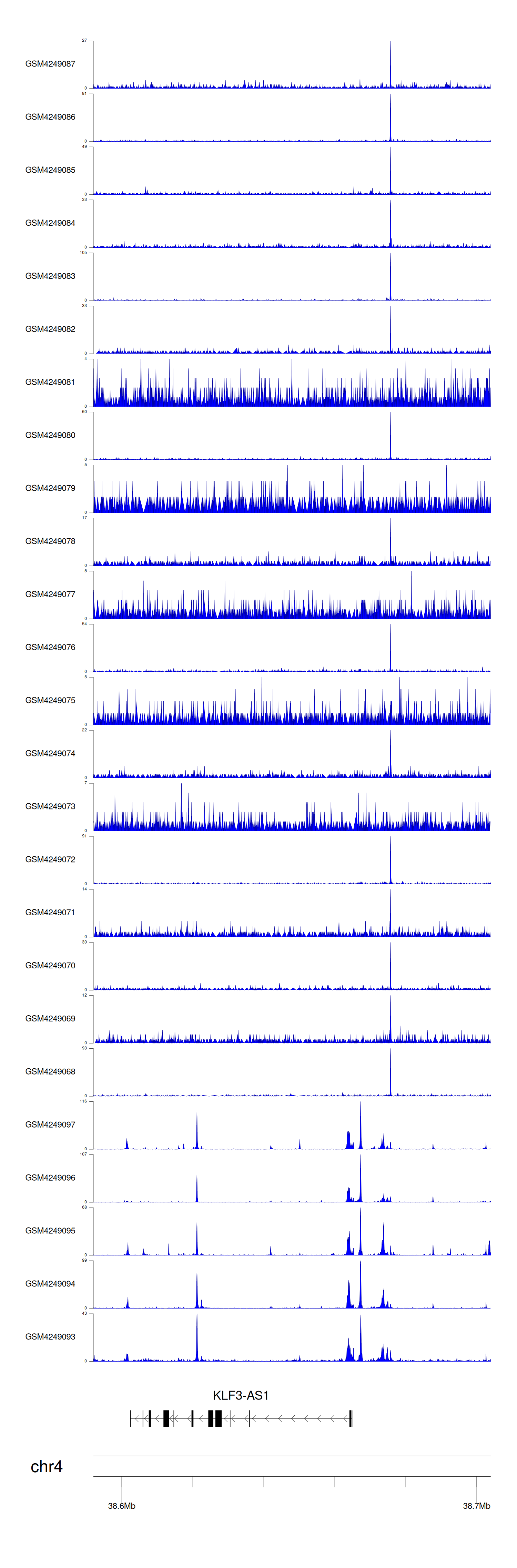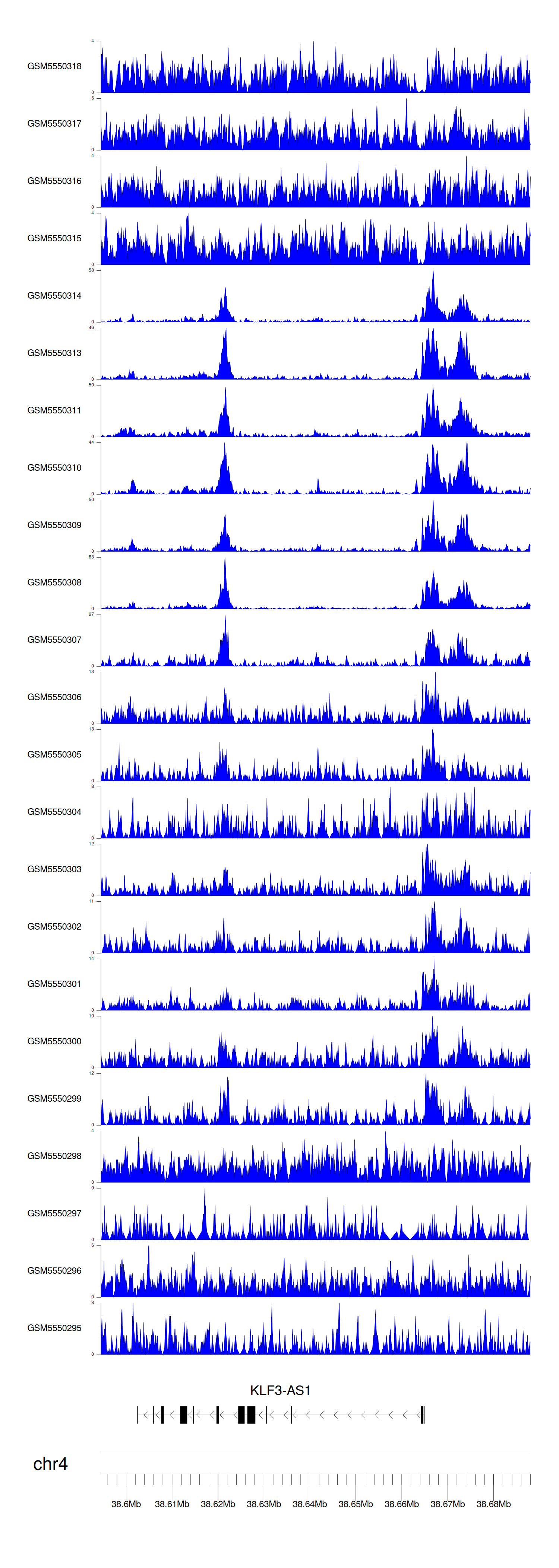 > Dataset: GSE143026 - KLF3-AS1 peak across samples