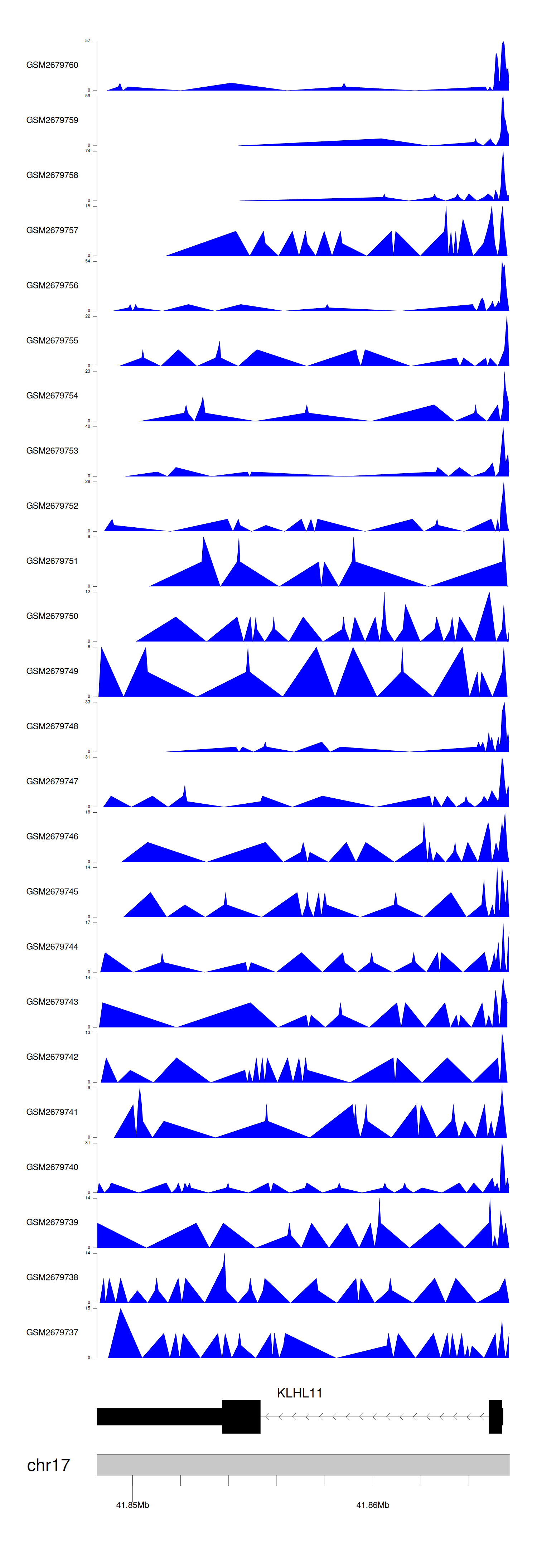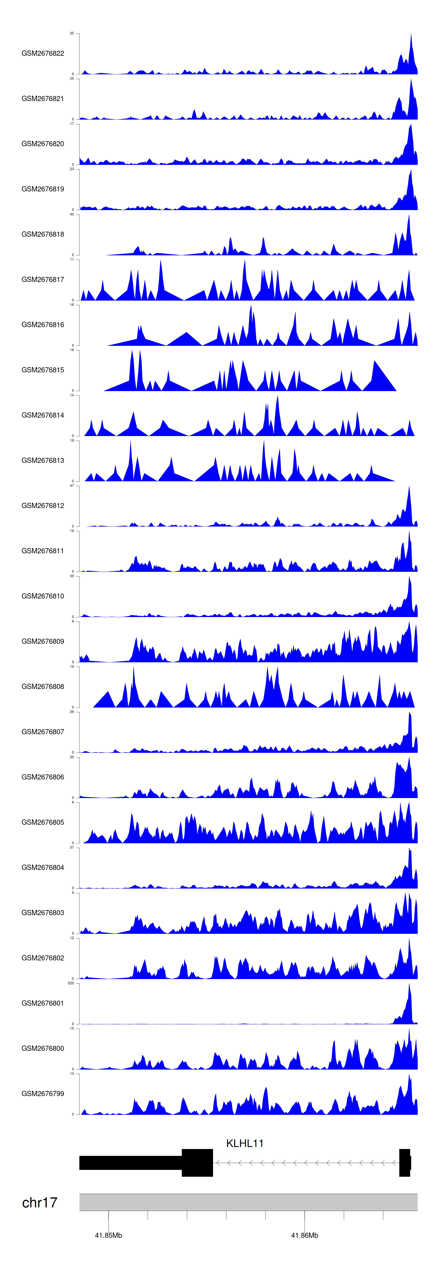 > Dataset: GSE100376 - KLHL11 peak across samples