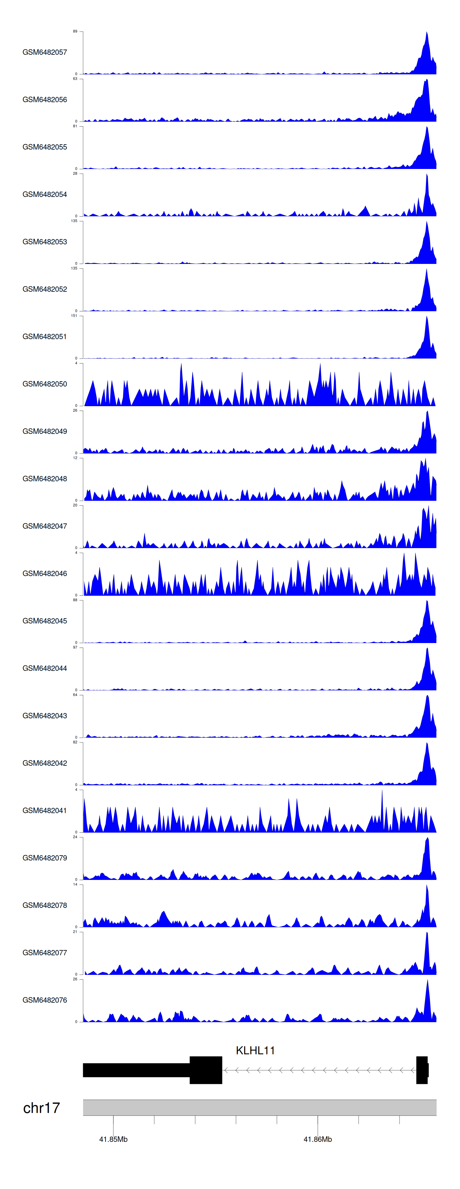 > Dataset: GSE165705 - KLHL11 peak across samples