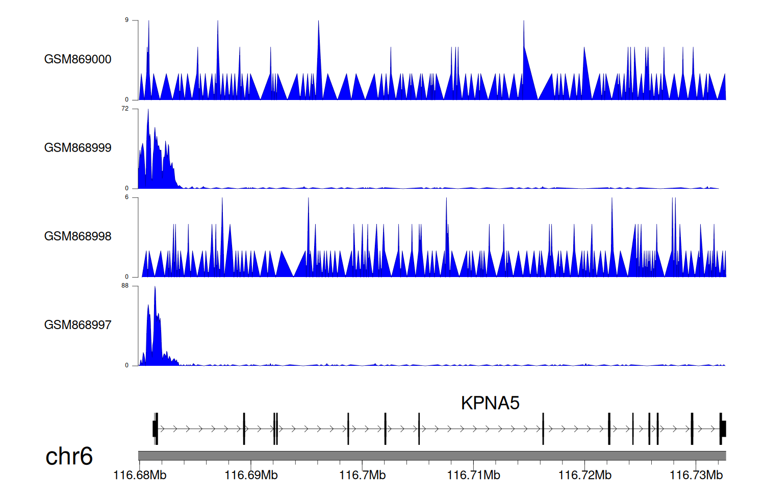 > Dataset: GSE68402 - KPNA5 peak across samples