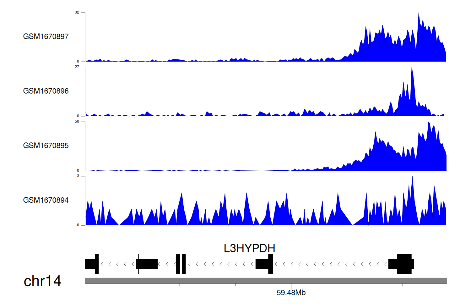 > Dataset: GSE64877 - L3HYPDH peak across samples