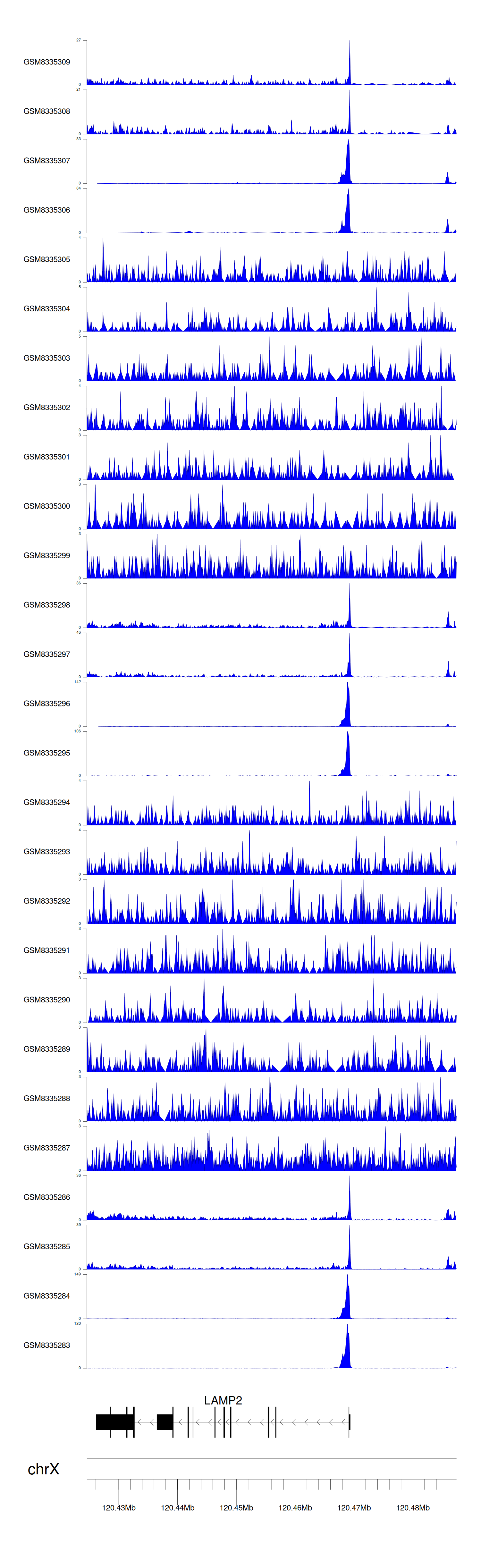 > Dataset: GSE270130 - LAMP2 peak across samples