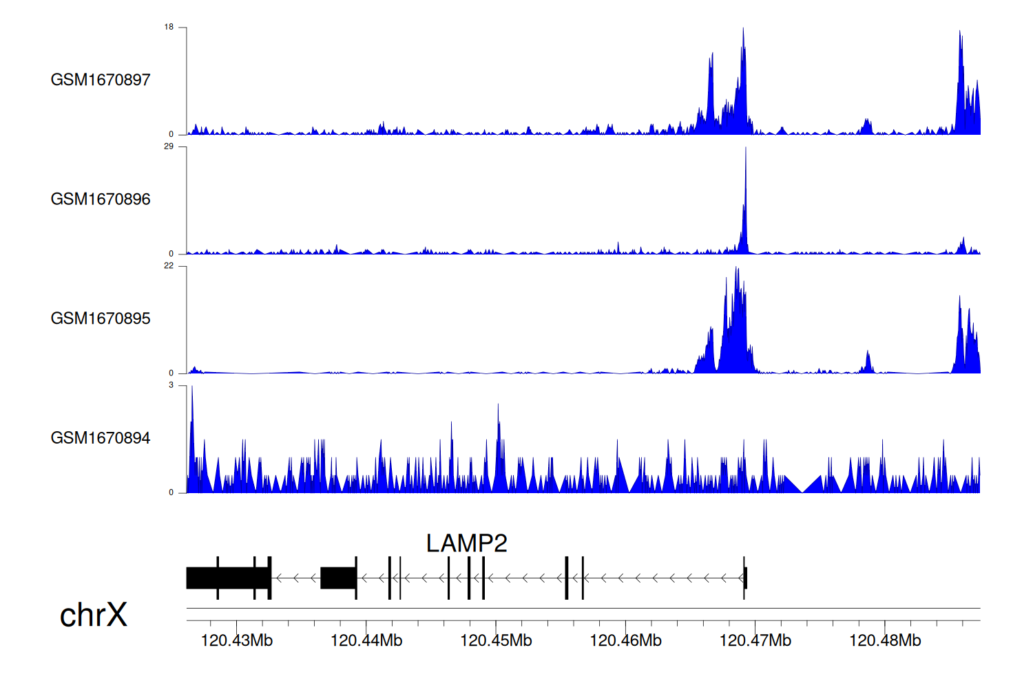 > Dataset: GSE68402 - LAMP2 peak across samples
