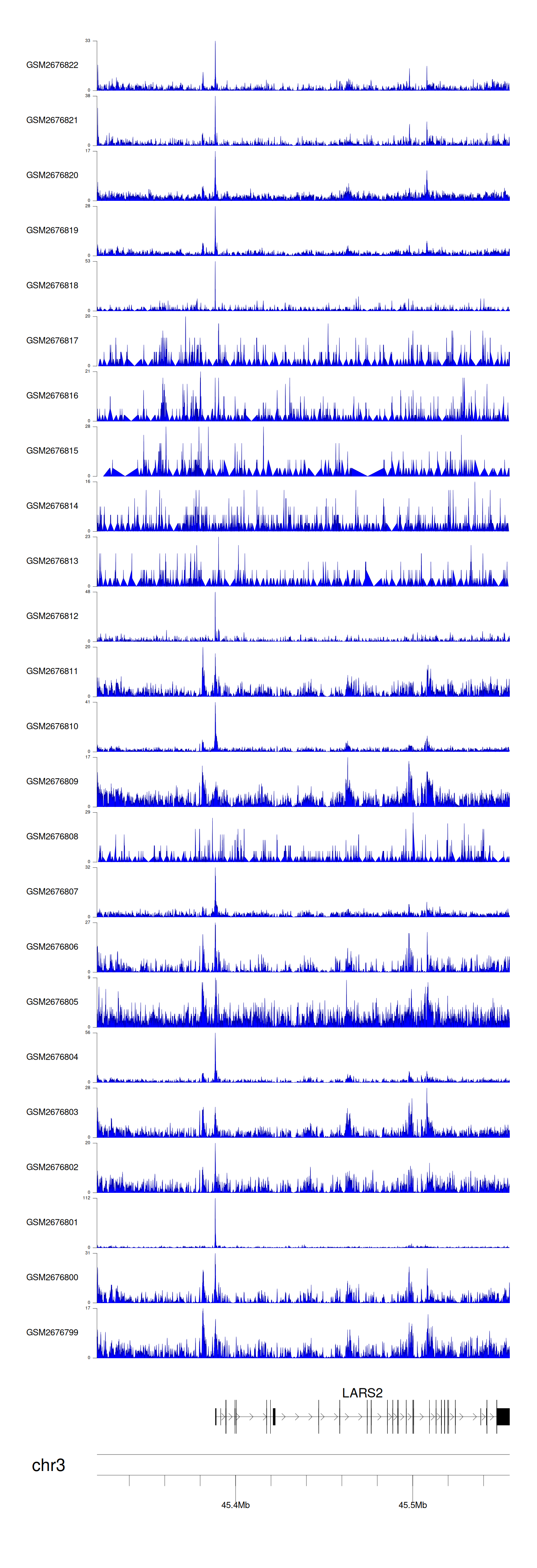 > Dataset: GSE100376 - LARS2 peak across samples