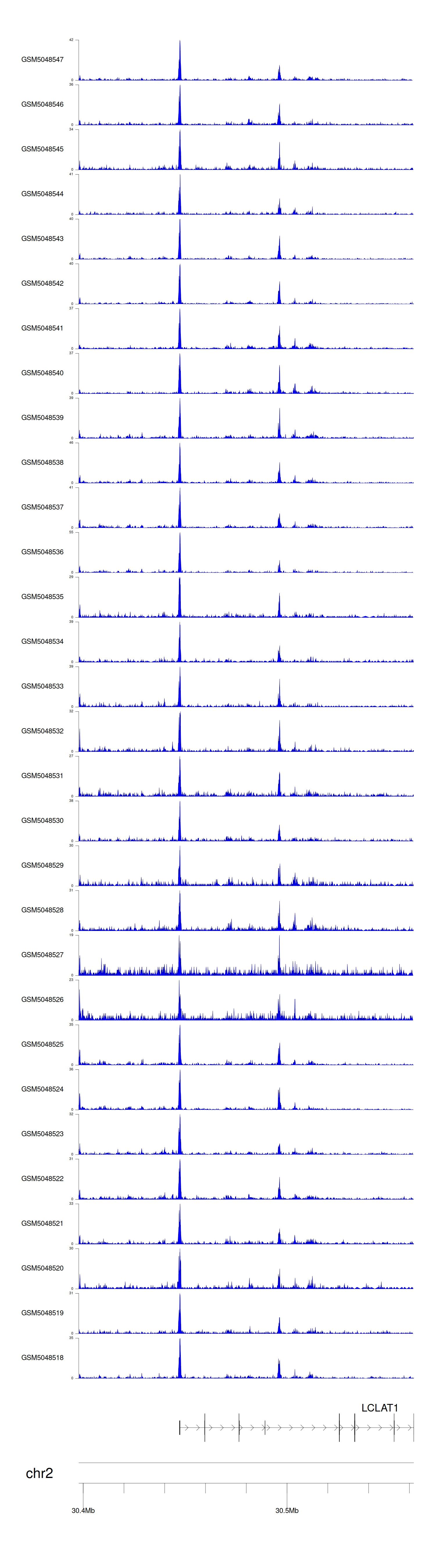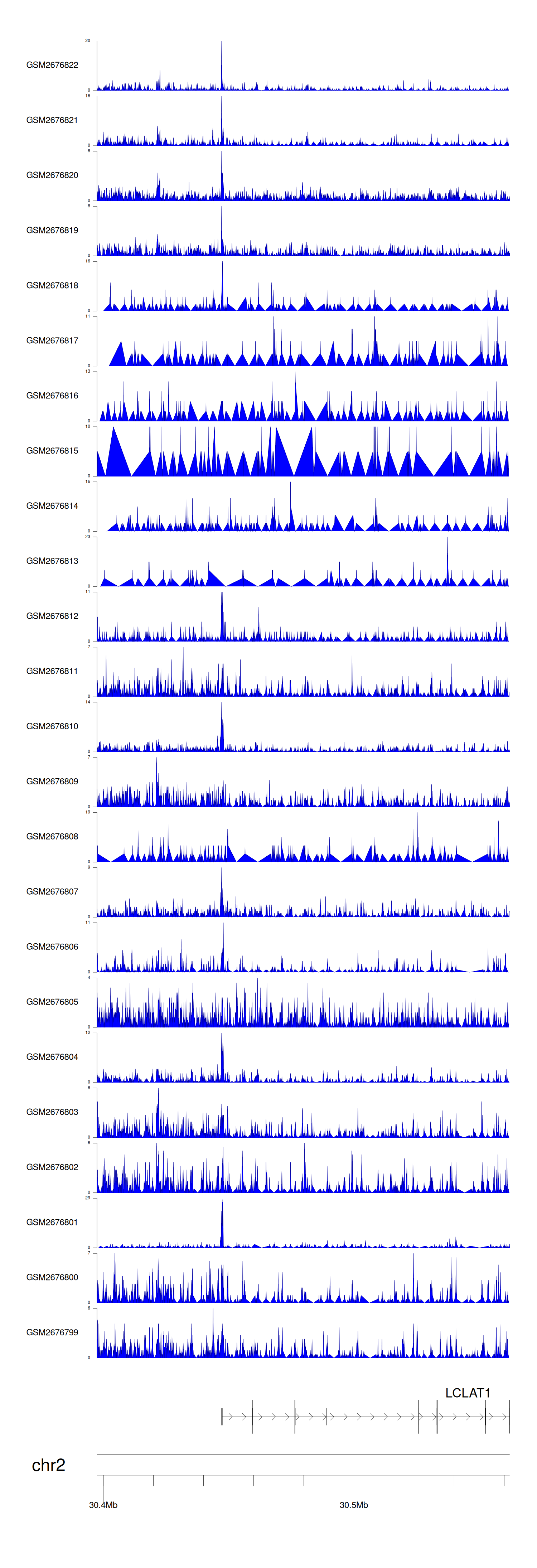 > Dataset: GSE100376 - LCLAT1 peak across samples