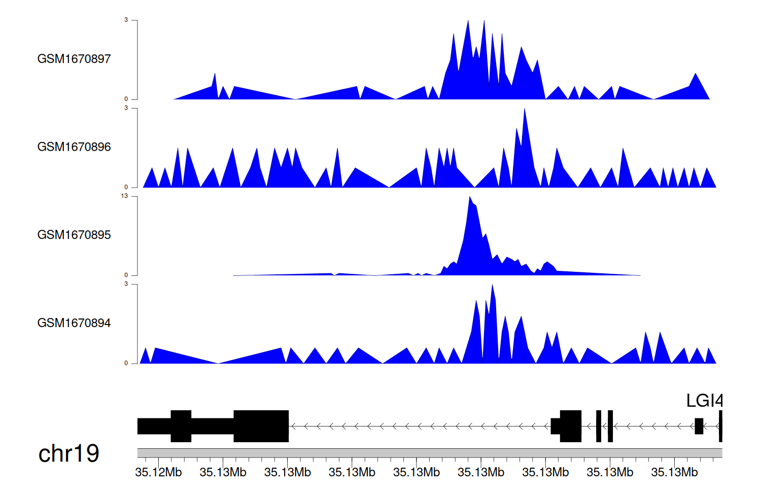 > Dataset: GSE35465 - LGI4 peak across samples