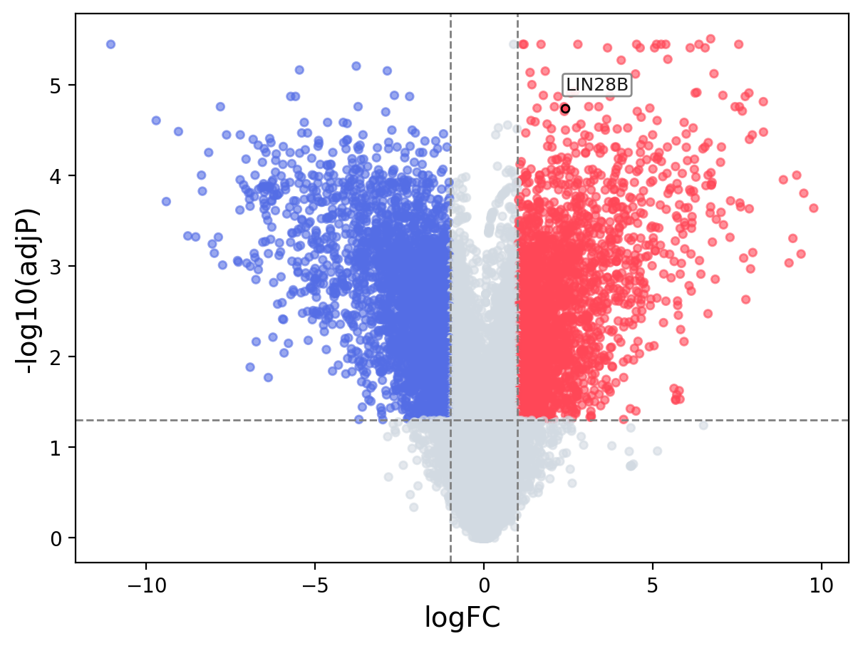 When the query gene is differentially changed in the dataset, a volcano/bar plot will be displayed.